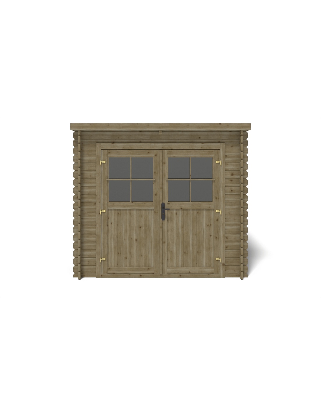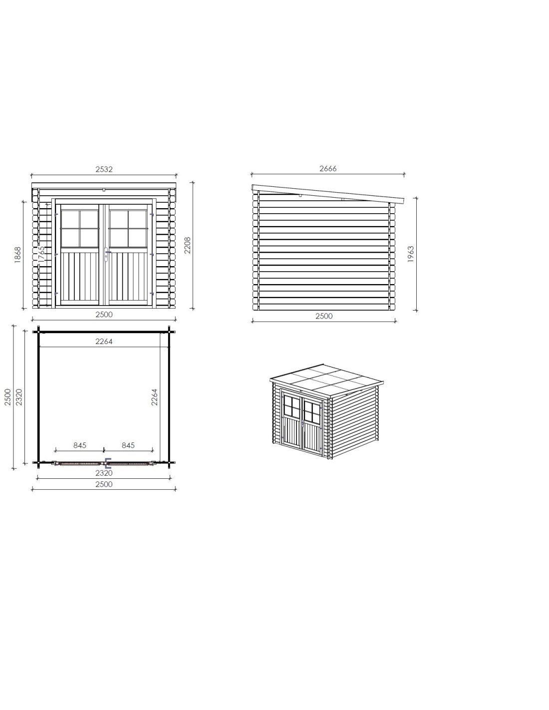 Gartenhaus aus Holz DOM389 von ALTANKA p.s.a. Es ist aus hochwertigem Holz gefertigt. Es ist 2.5M breit und 2.5M tief.