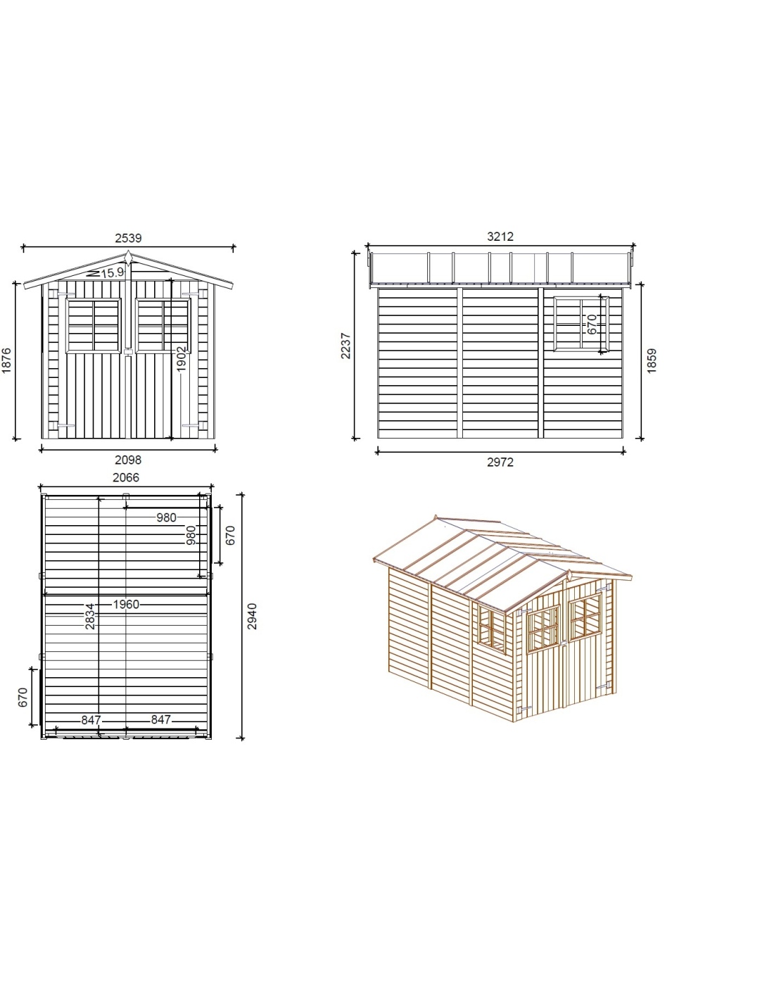 Gartenhaus aus Holz DOM646 von ALTANKA p.s.a. Es ist aus hochwertigem Holz gefertigt. Es ist 2.07M breit und 2.94M tief.