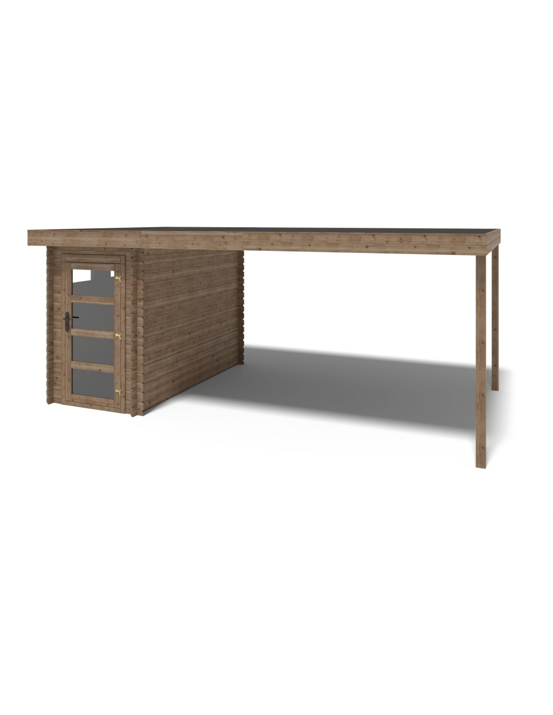 Gartenhaus aus Holz DOM628+DOM179 von ALTANKA p.s.a. ist idealer Ort zum Entspannen und zum Spaß für die ganze Familie. Das Haus ist aus hochwertigem Holz gefertigt. Es ist 5.5M breit und 3M tief, was viel Platz innen bietet.