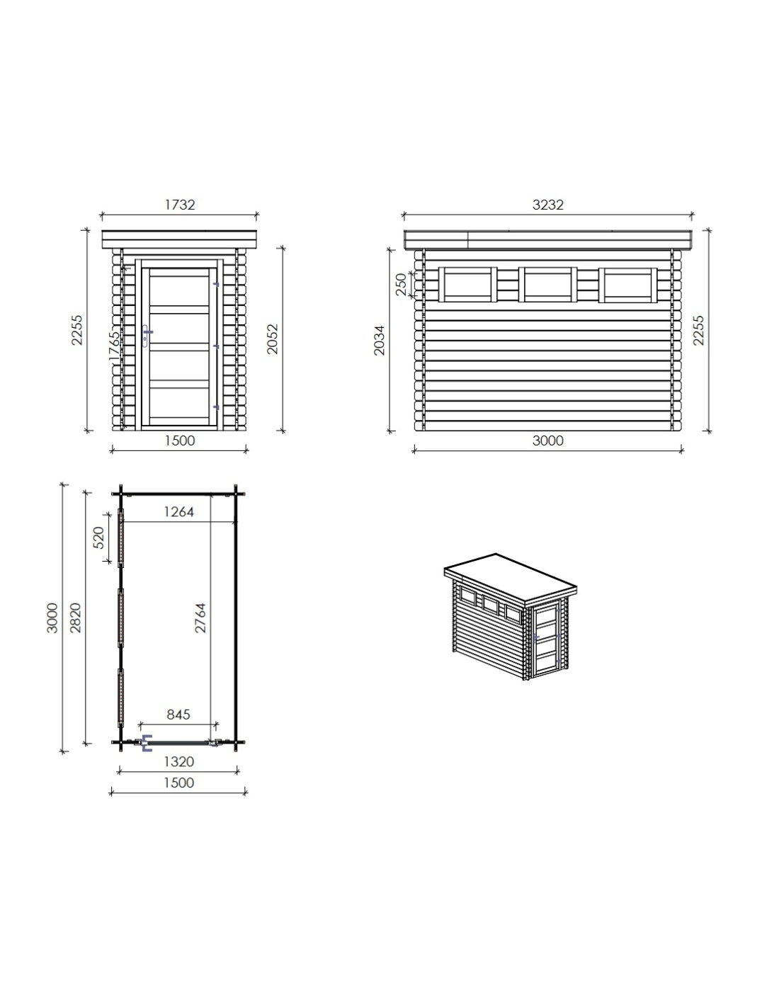 Die Fotos zeigen das Holzhaus DOM628+DOM179 mit der Fläche von 16 m2, Frontbreite von 5.5M und Tiefe von 3M.