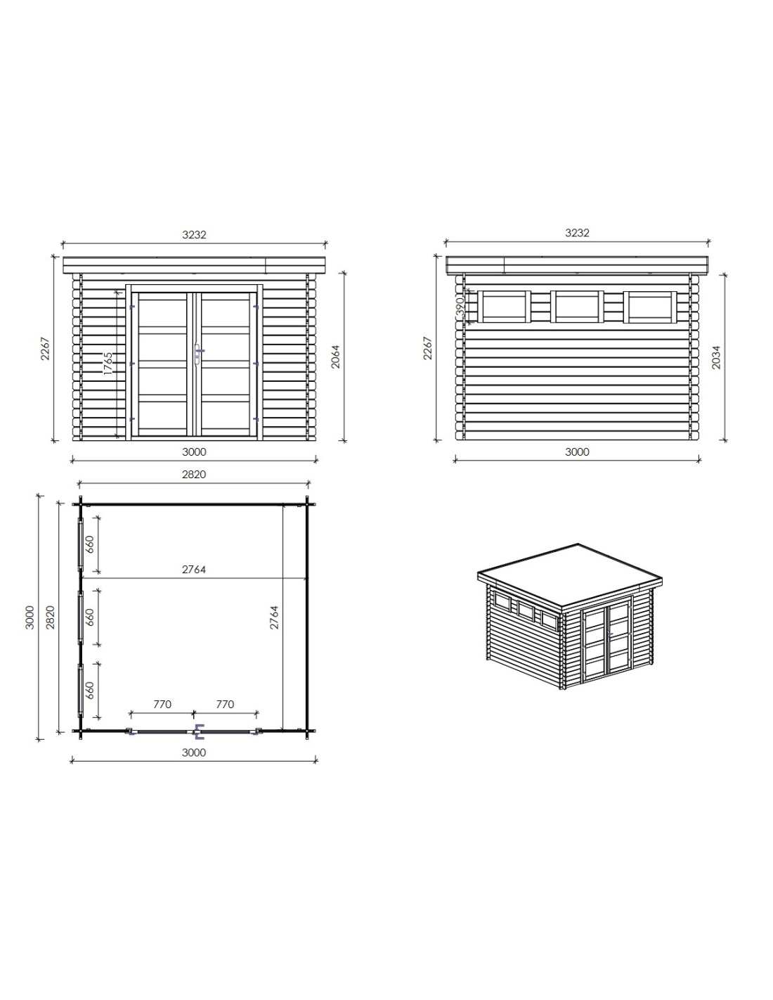 Gartenhaus aus Holz DOM629+DOM179 von ALTANKA p.s.a. ist idealer Ort zum Entspannen und zum Spaß für die ganze Familie. Das Haus ist aus hochwertigem Holz gefertigt. Es ist 3M breit und 3M tief, was viel Platz innen bietet.