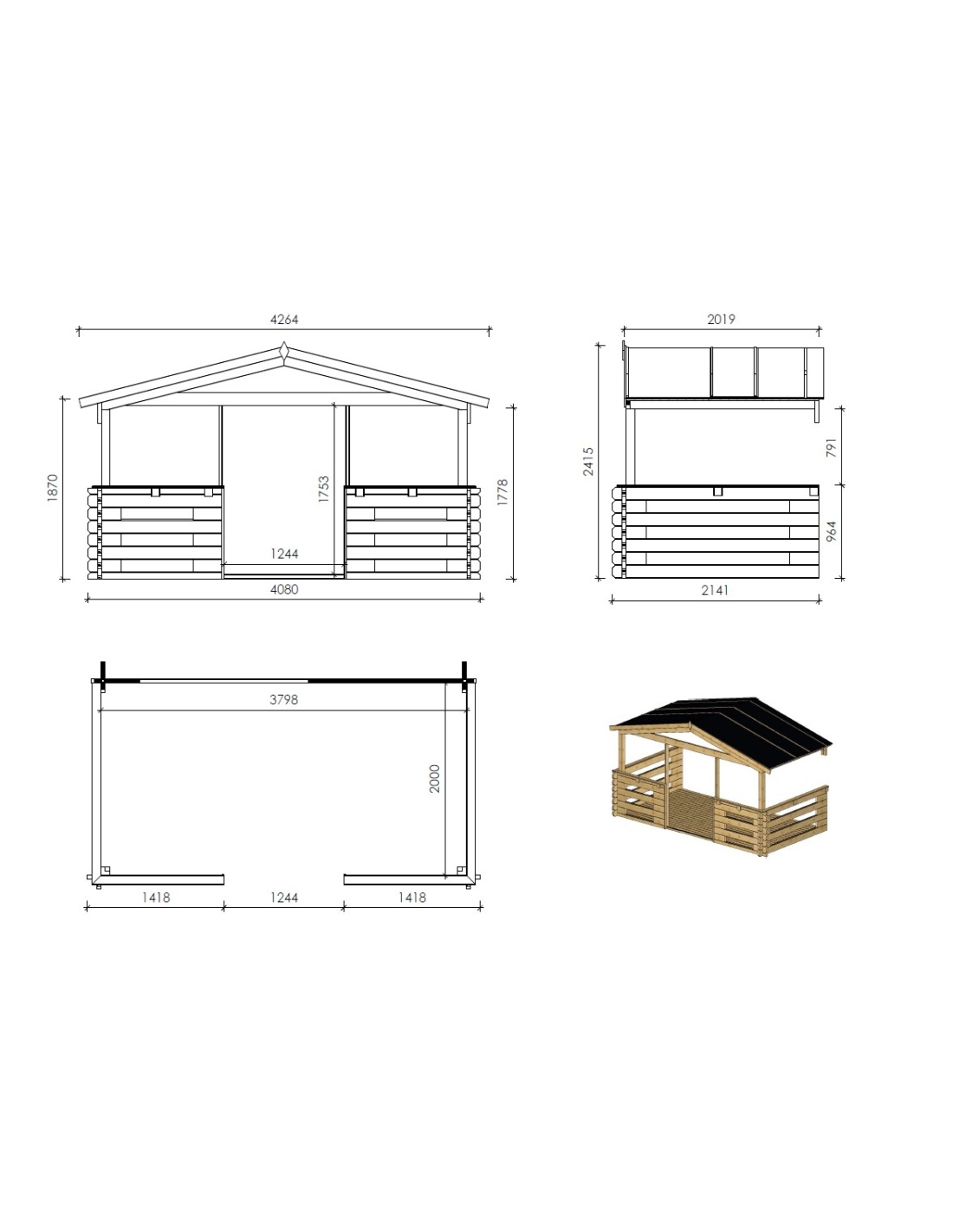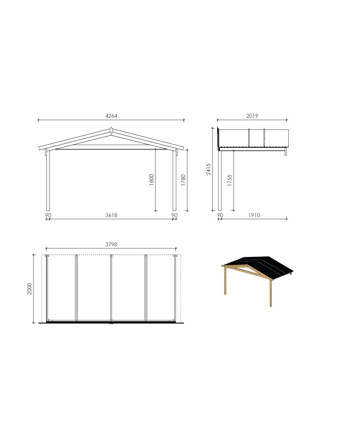 - Pfostenstärke (mm): 90x90