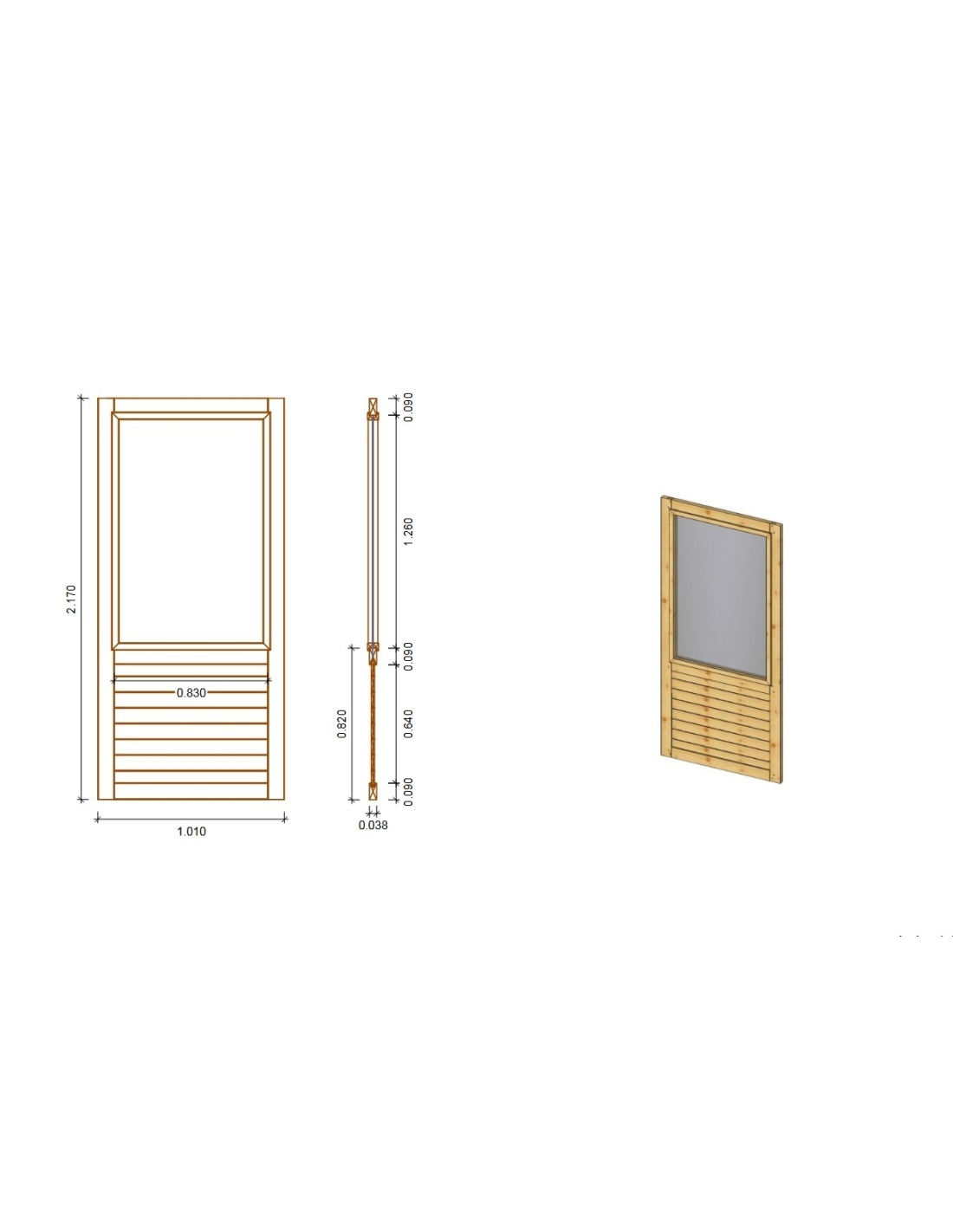 Die Veränderung der Holzfarbe und -struktur hängt von den Lagerbedingungen ab und hat keinen Einfluss auf die Qualität. Das Produkt hat eine Grün Farbe, die der natürlichen Farbe nahekommt, aber es besteht die Möglichkeit, es in einer anderen Farbe zu streichen.