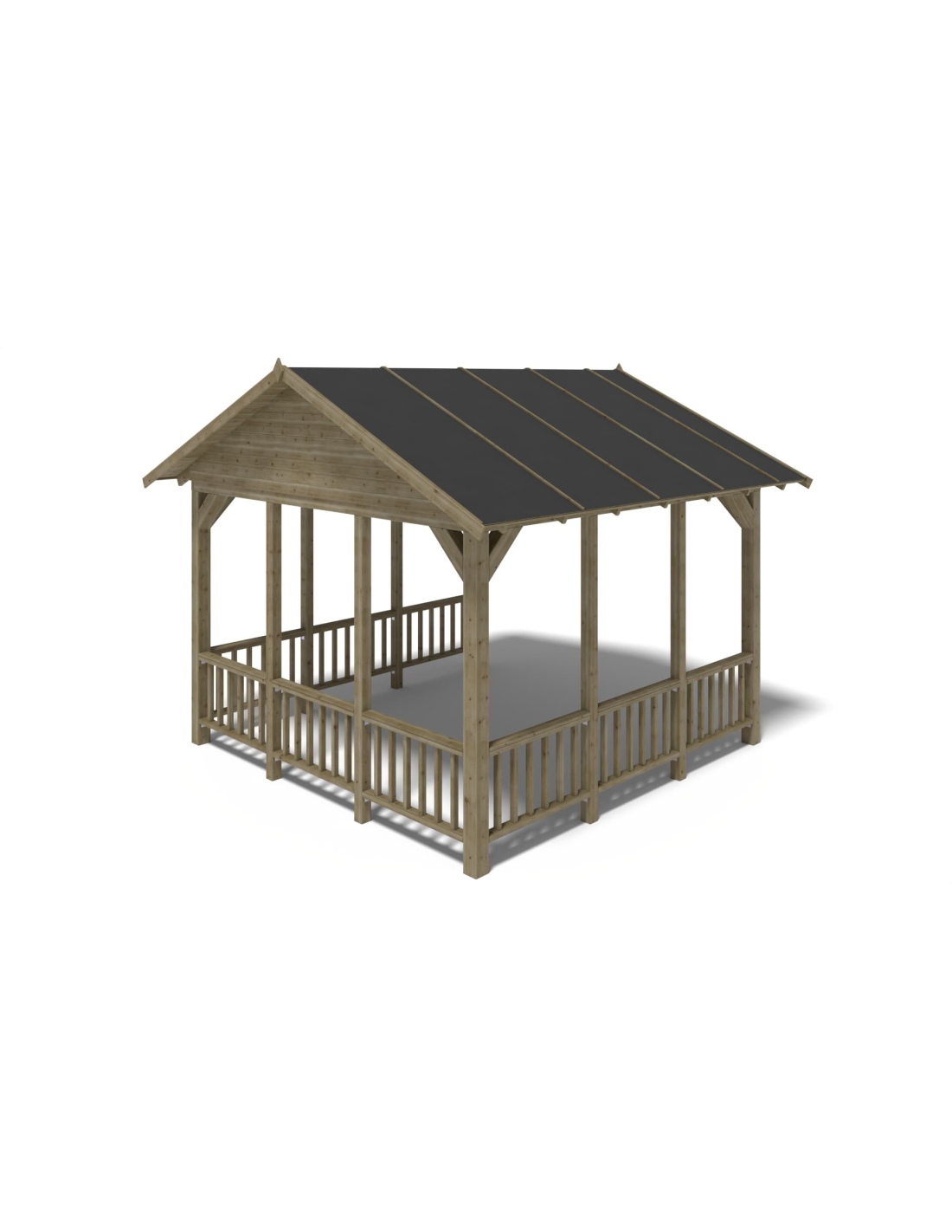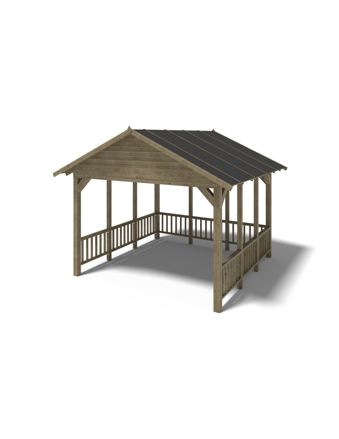 Gartenpavillon mit einer Fläche von 16.3 m2, stabilen 120x120 mm Eckpfosten, aus grün imprägniertem, getrocknetem Fichtenholz.