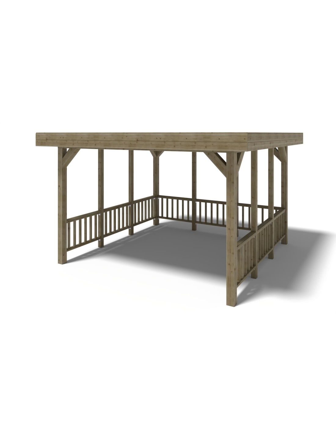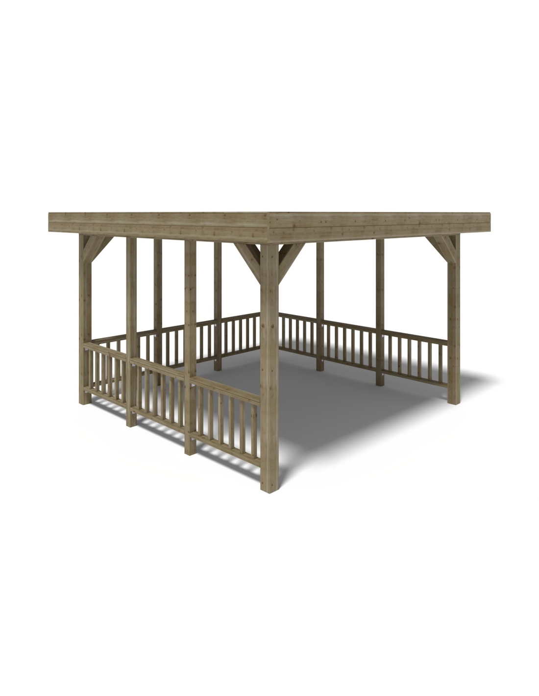 Gartenpavillon mit einer Fläche von 16.3 m2, stabilen 120x120 mm Eckpfosten, aus grün imprägniertem, getrocknetem Fichtenholz.