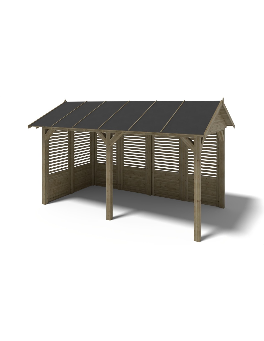 Gartenpavillon mit einer Fläche von 15 m2, stabilen 120x120 mm Eckpfosten, aus grün imprägniertem, getrocknetem Fichtenholz.