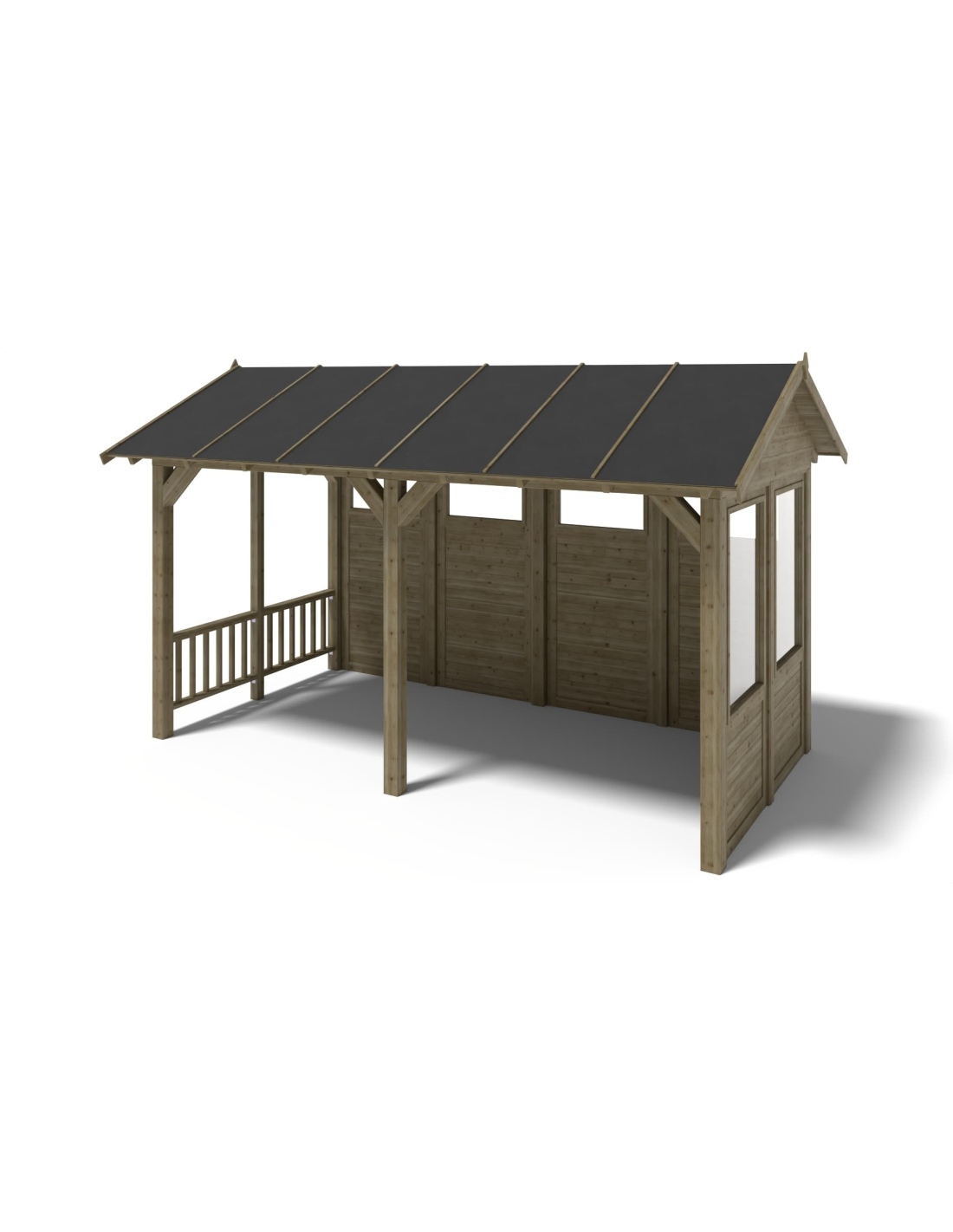 Gartenpavillon mit einer Fläche von 15 m2, stabilen 120x120 mm Eckpfosten, aus grün imprägniertem, getrocknetem Fichtenholz.