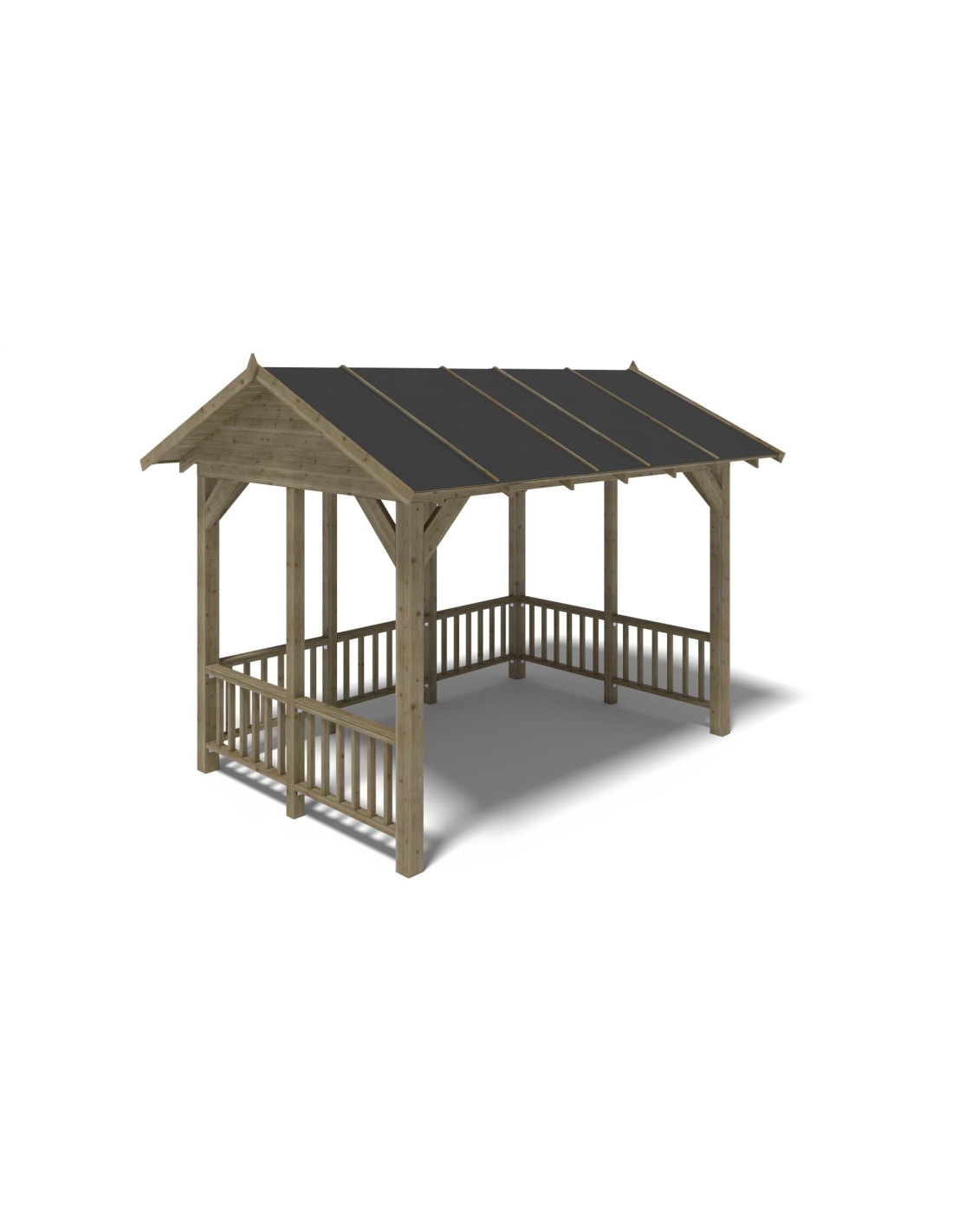 Gartenpavillon mit einer Fläche von 12 m2, stabilen 120x120 mm Eckpfosten, aus grün imprägniertem, getrocknetem Fichtenholz.