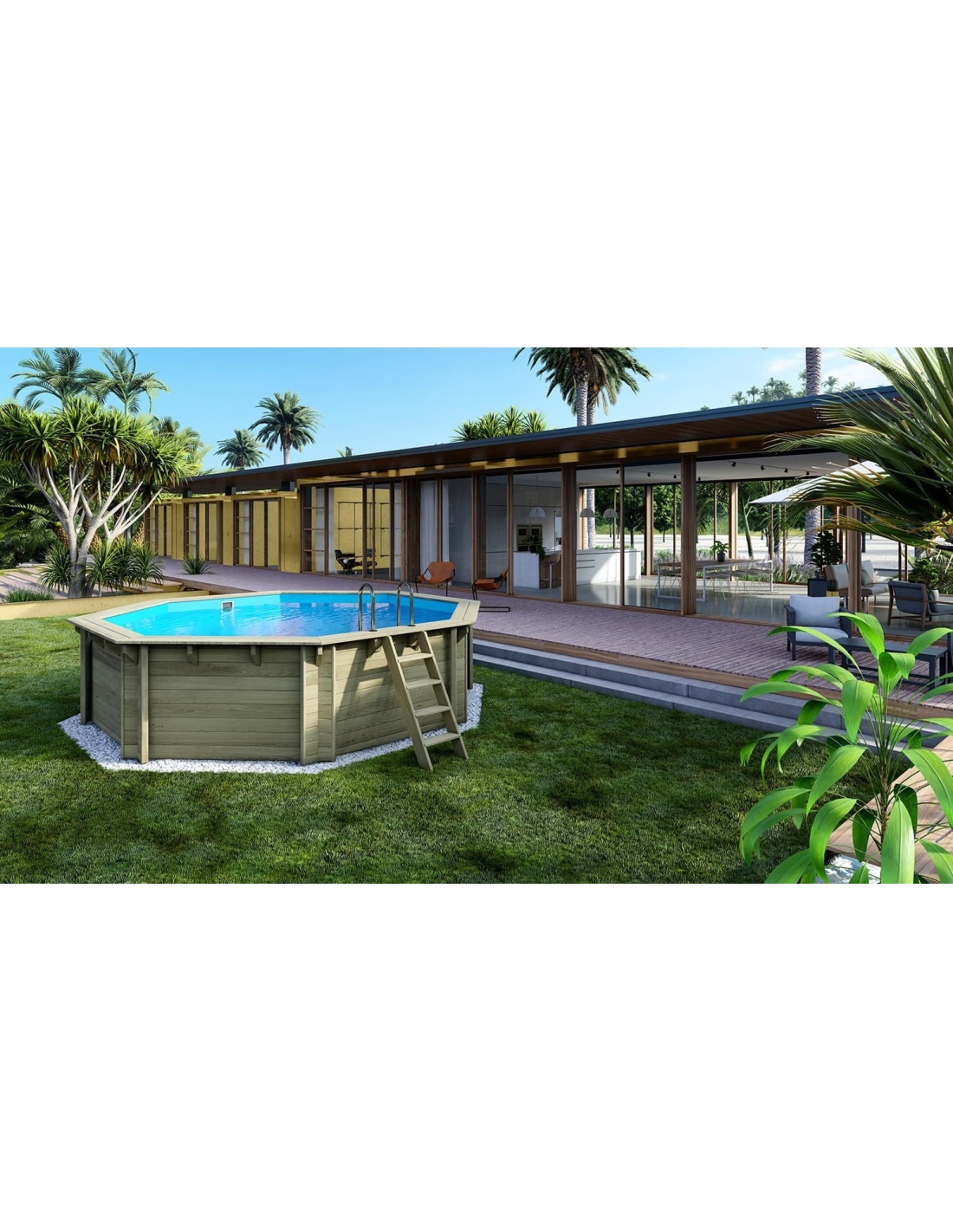 - Holztreppe mit der Möglichkeit, sie zu entfernen, wenn der Pool nicht genutzt wird
