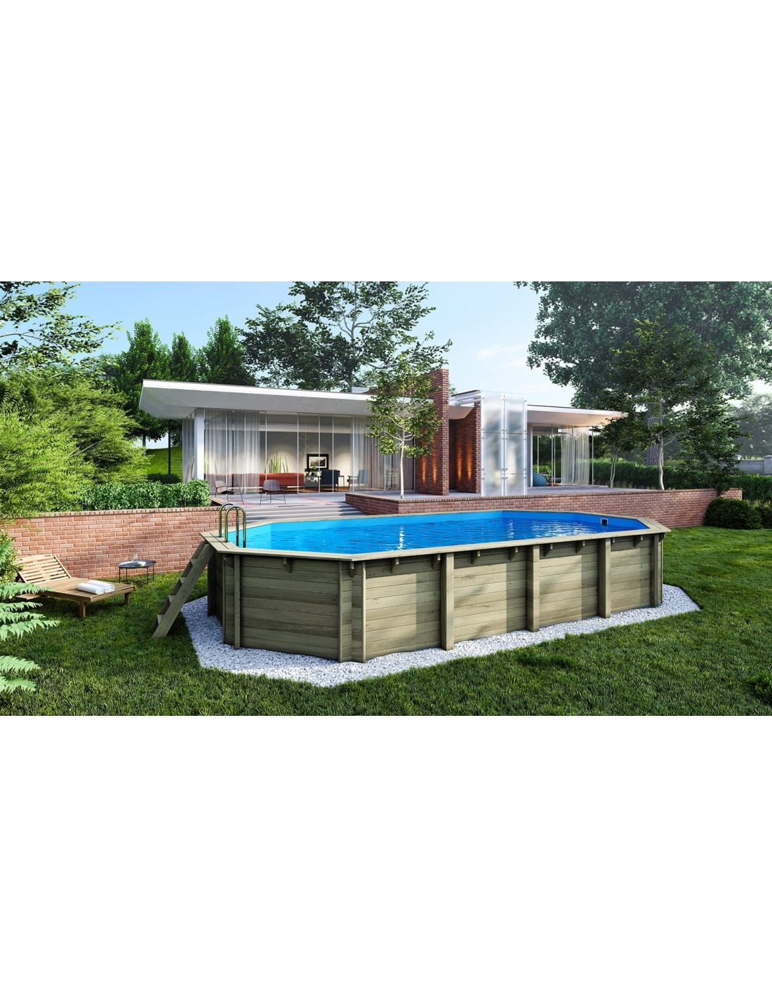 Die Holzkonstruktion verleiht ein warmes und natürliches Aussehen, was diese Art von Pools zu einer beliebten Wahl bei Gartenbesitzern macht, die Wert auf Harmonie mit der umgebenden Natur legen.