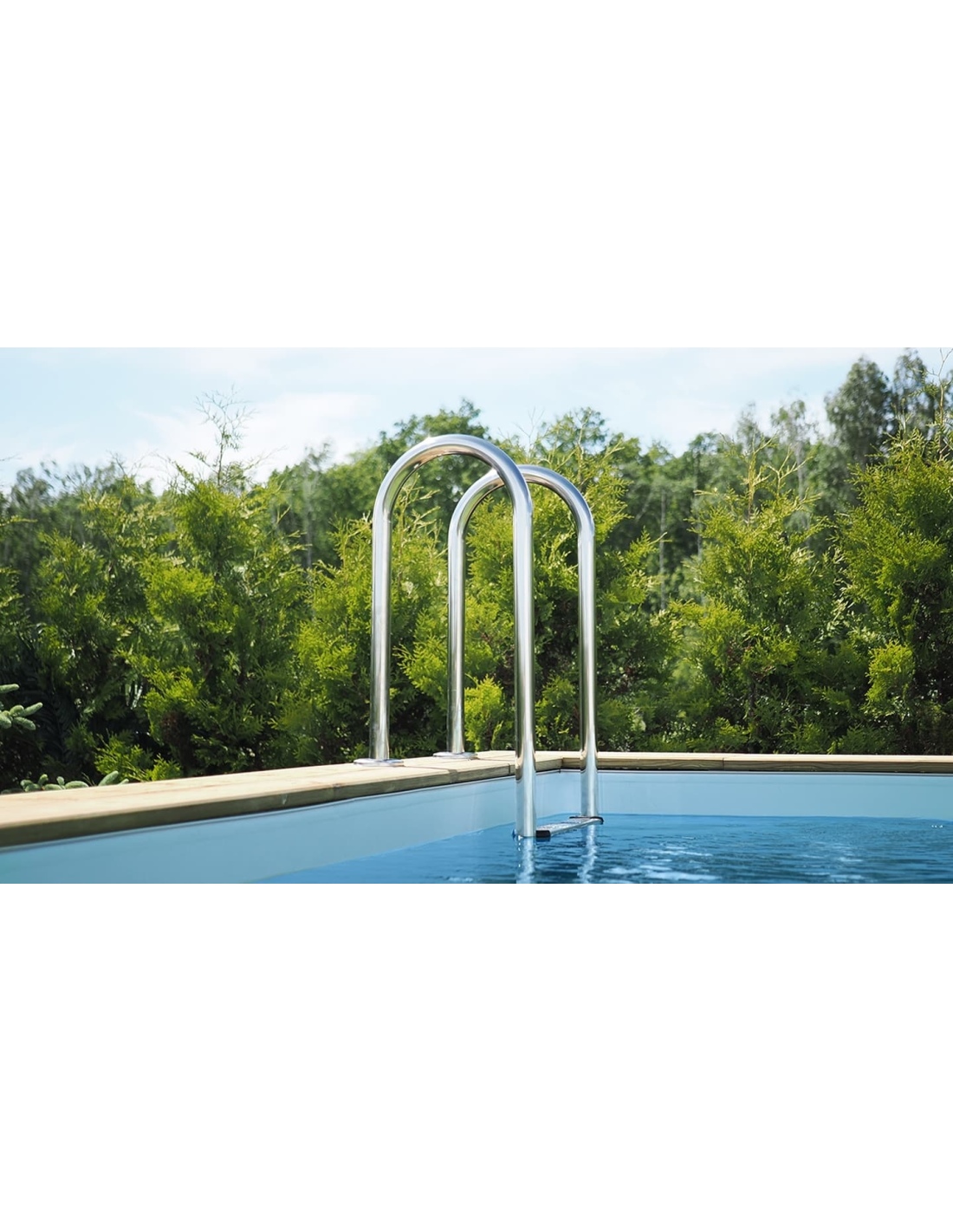 - Holztreppe mit der Möglichkeit, sie zu entfernen, wenn der Pool nicht genutzt wird