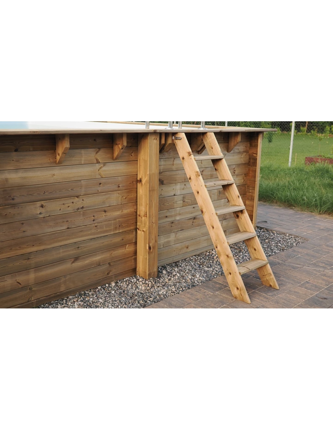 - Holztreppe mit der Möglichkeit, sie zu entfernen, wenn der Pool nicht genutzt wird