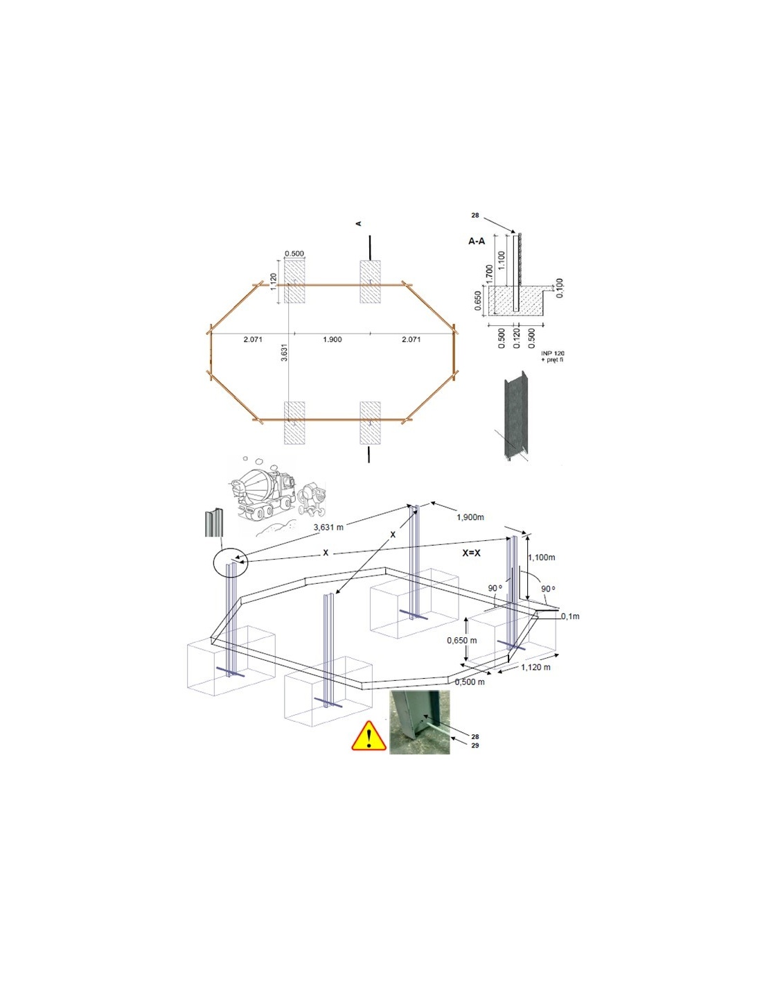 Vor Beginn der Bauarbeiten ist zu beachten, dass die IPN-Stahlprofile zusammen mit dem Pool geliefert werden. Dies bedeutet, dass die Vorbereitung des Untergrunds nur das entsprechende Nivellieren umfassen sollte, während das Betonieren erst nach Erhalt des kompletten Sets durchgeführt werden sollte, um die Profile korrekt im Fundament zu verankern.
