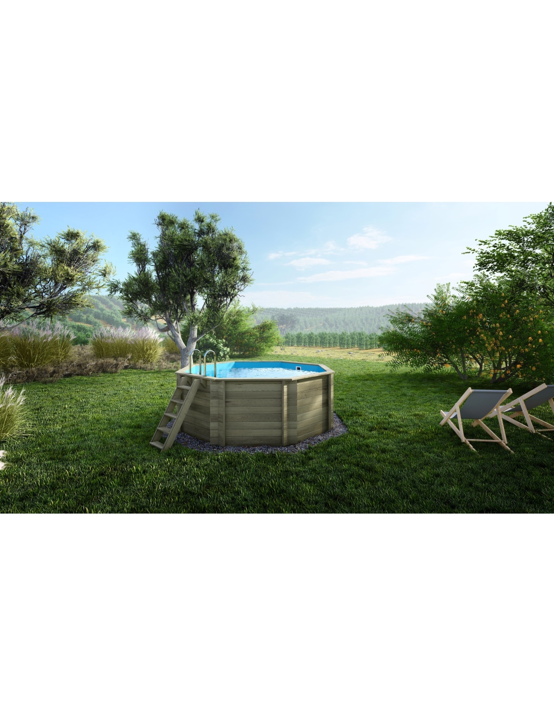 Die Holzkonstruktion verleiht ein warmes und natürliches Aussehen, was diese Art von Pools zu einer beliebten Wahl bei Gartenbesitzern macht, die Wert auf Harmonie mit der umgebenden Natur legen.