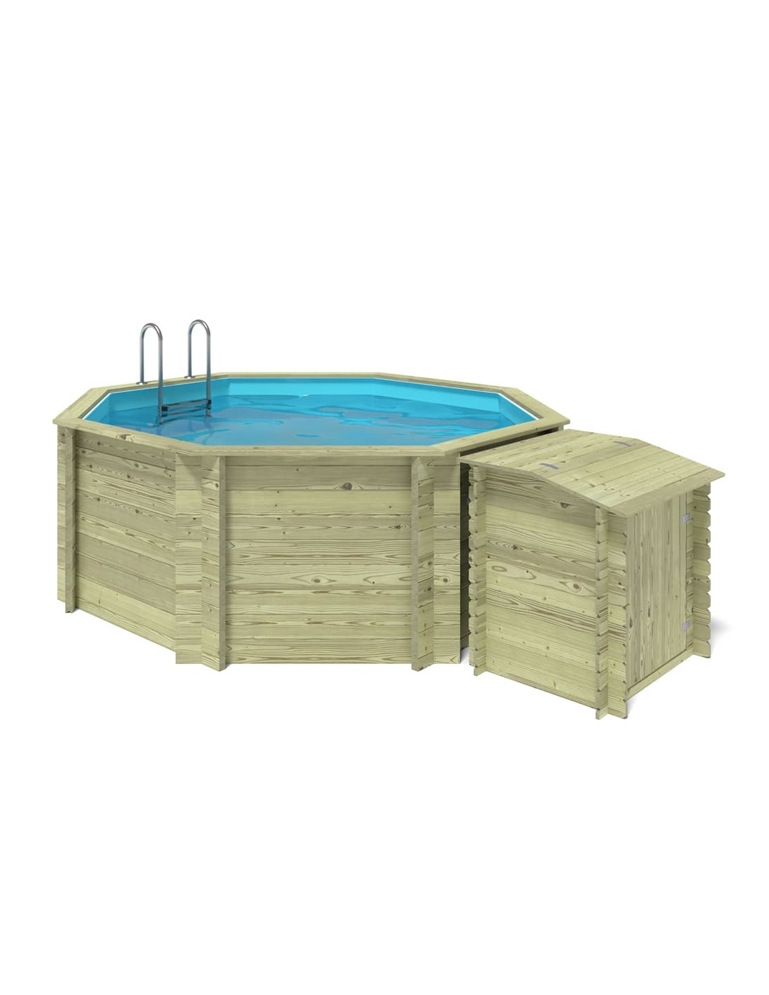 - Holztreppe mit der Möglichkeit, sie zu entfernen, wenn der Pool nicht genutzt wird