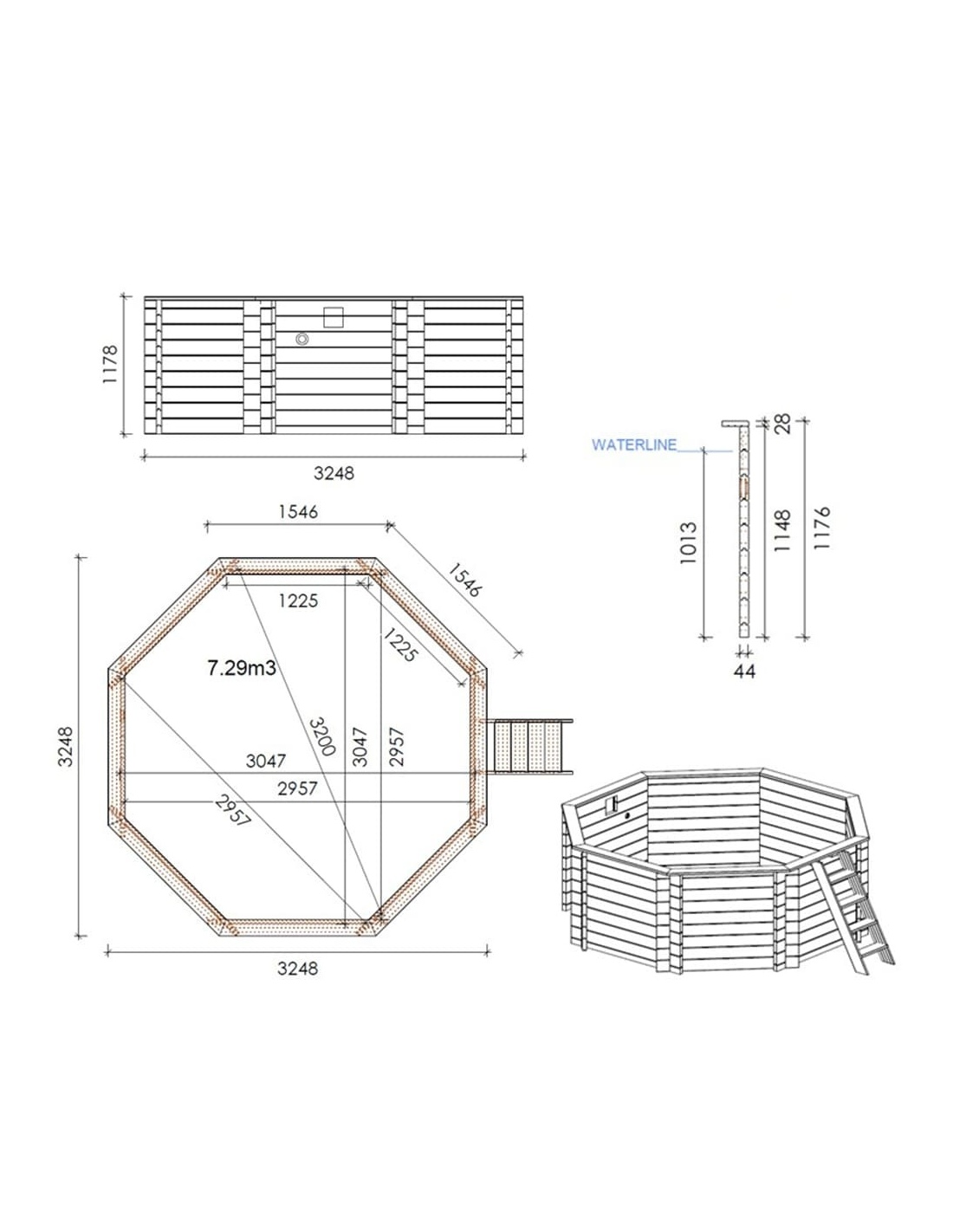 - Poolvolumen (m3): 7.34