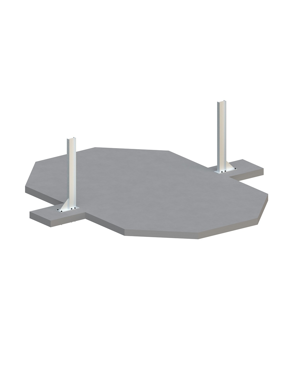 - Art der Bodenverankerung: Mit am Beton verschraubten Stahlstützen