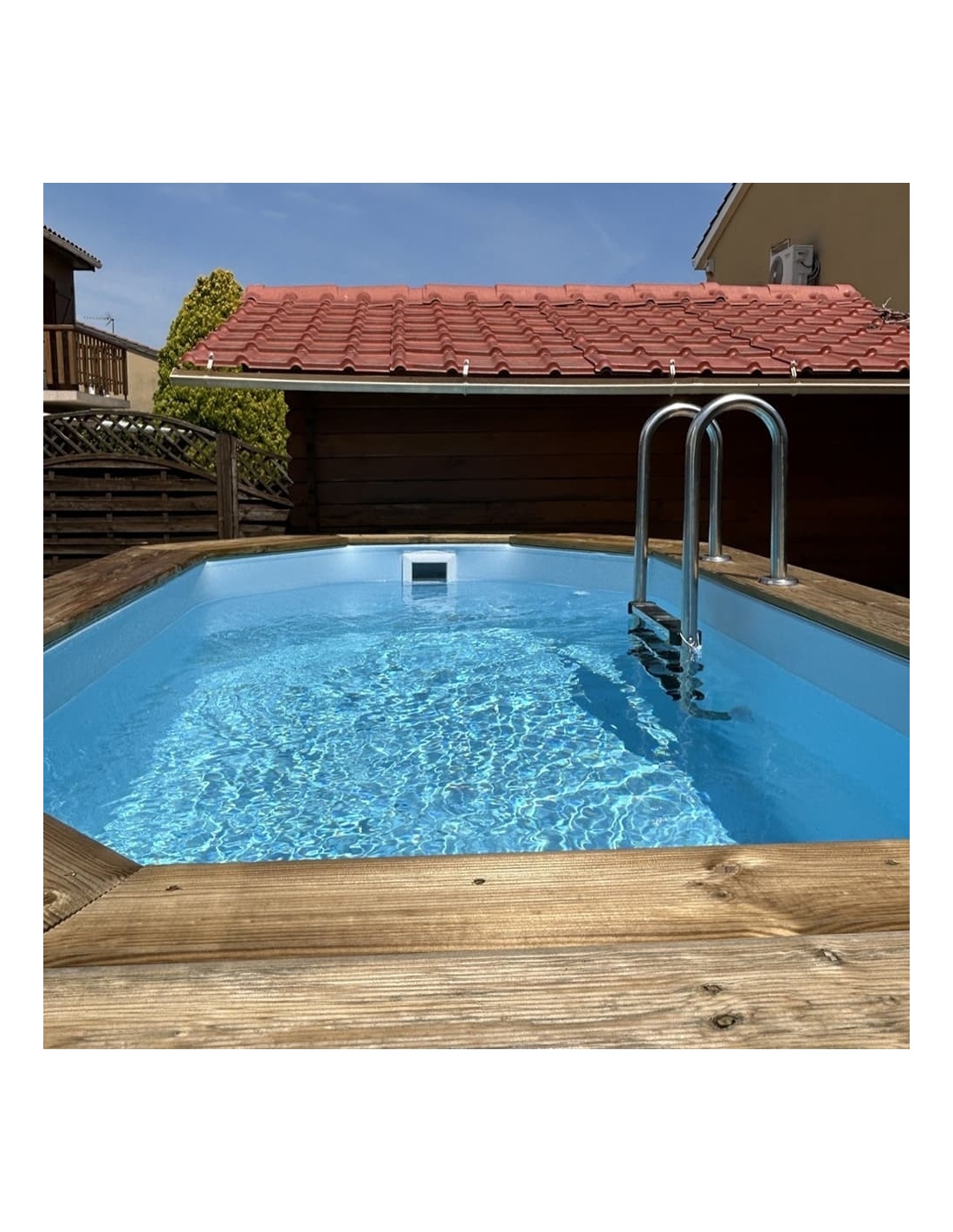 - Holztreppe mit der Möglichkeit, sie zu entfernen, wenn der Pool nicht genutzt wird