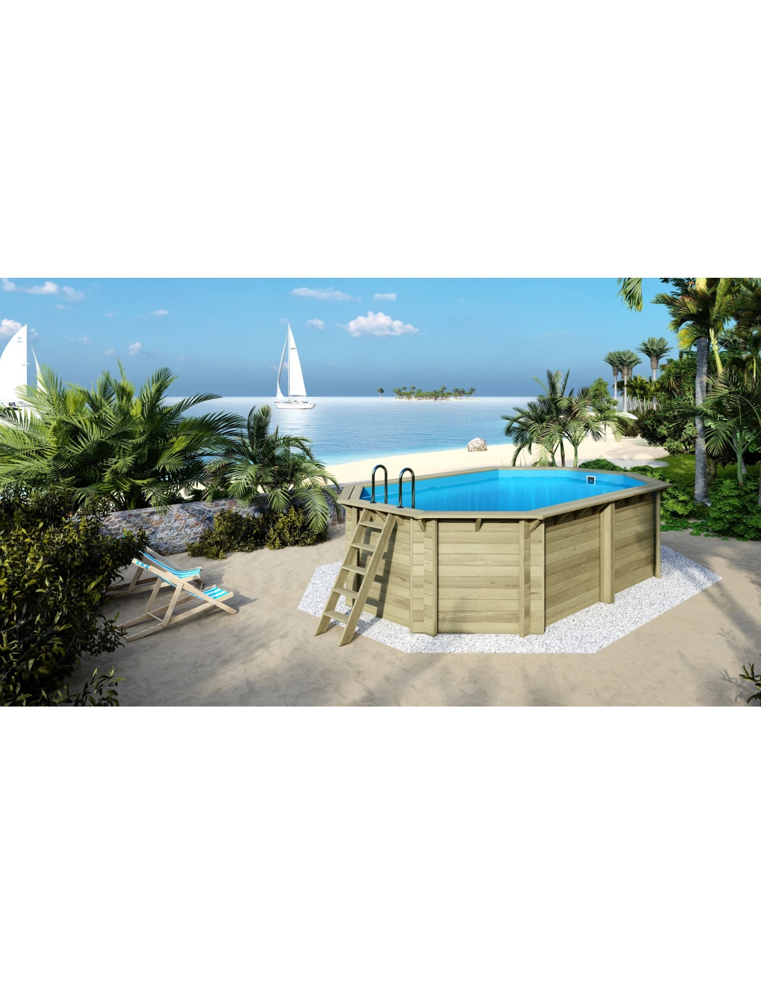 - Holztreppe mit der Möglichkeit, sie zu entfernen, wenn der Pool nicht genutzt wird