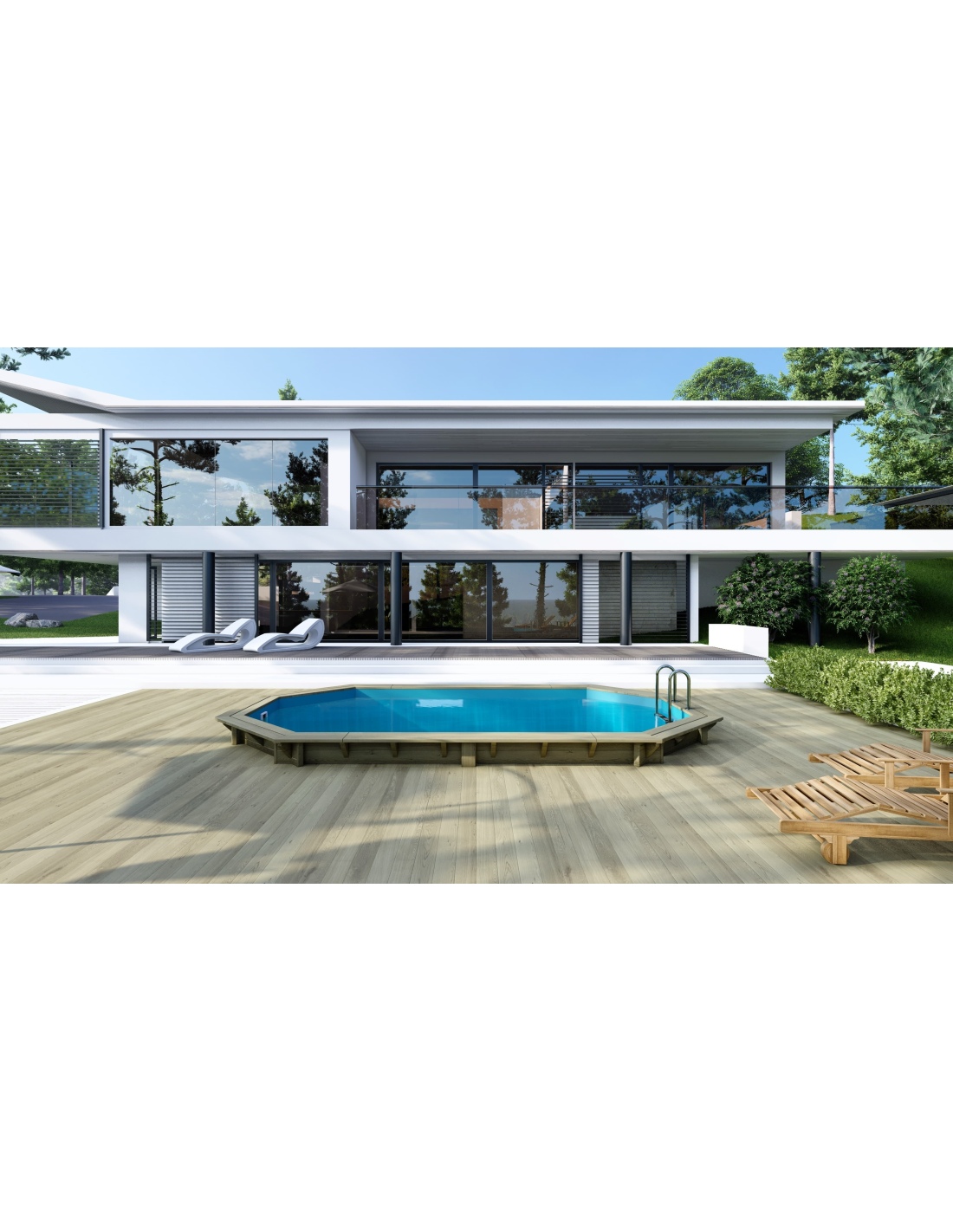 - Holztreppe mit der Möglichkeit, sie zu entfernen, wenn der Pool nicht genutzt wird