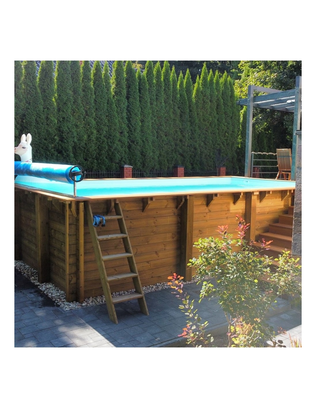 - Holztreppe mit der Möglichkeit, sie zu entfernen, wenn der Pool nicht genutzt wird