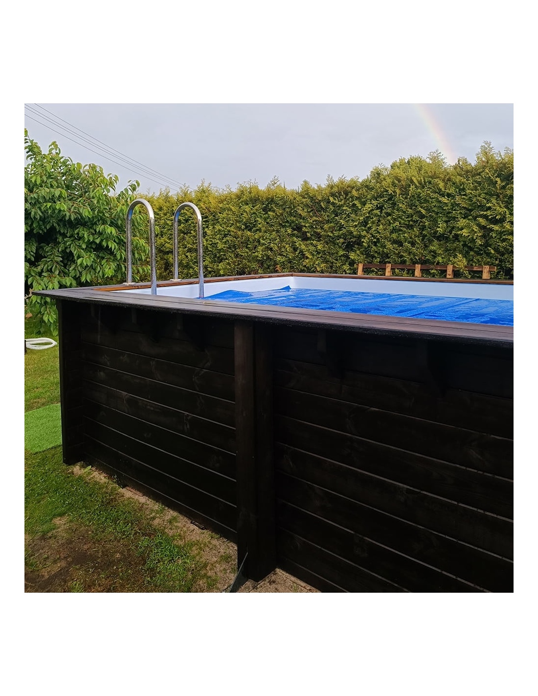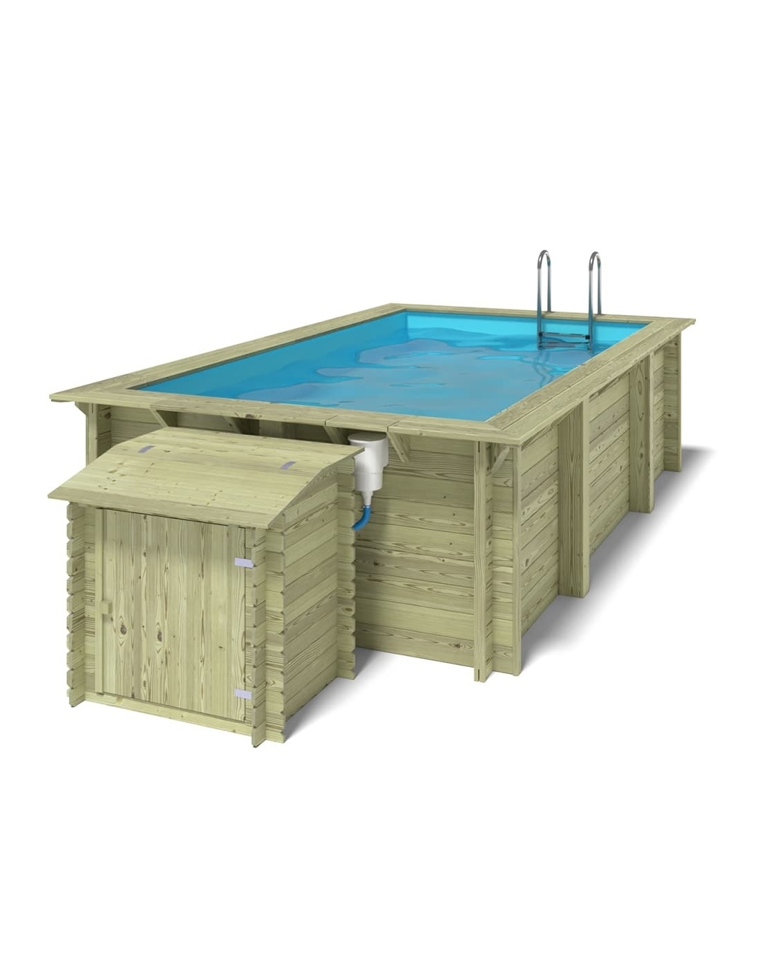 - Holztreppe mit der Möglichkeit, sie zu entfernen, wenn der Pool nicht genutzt wird