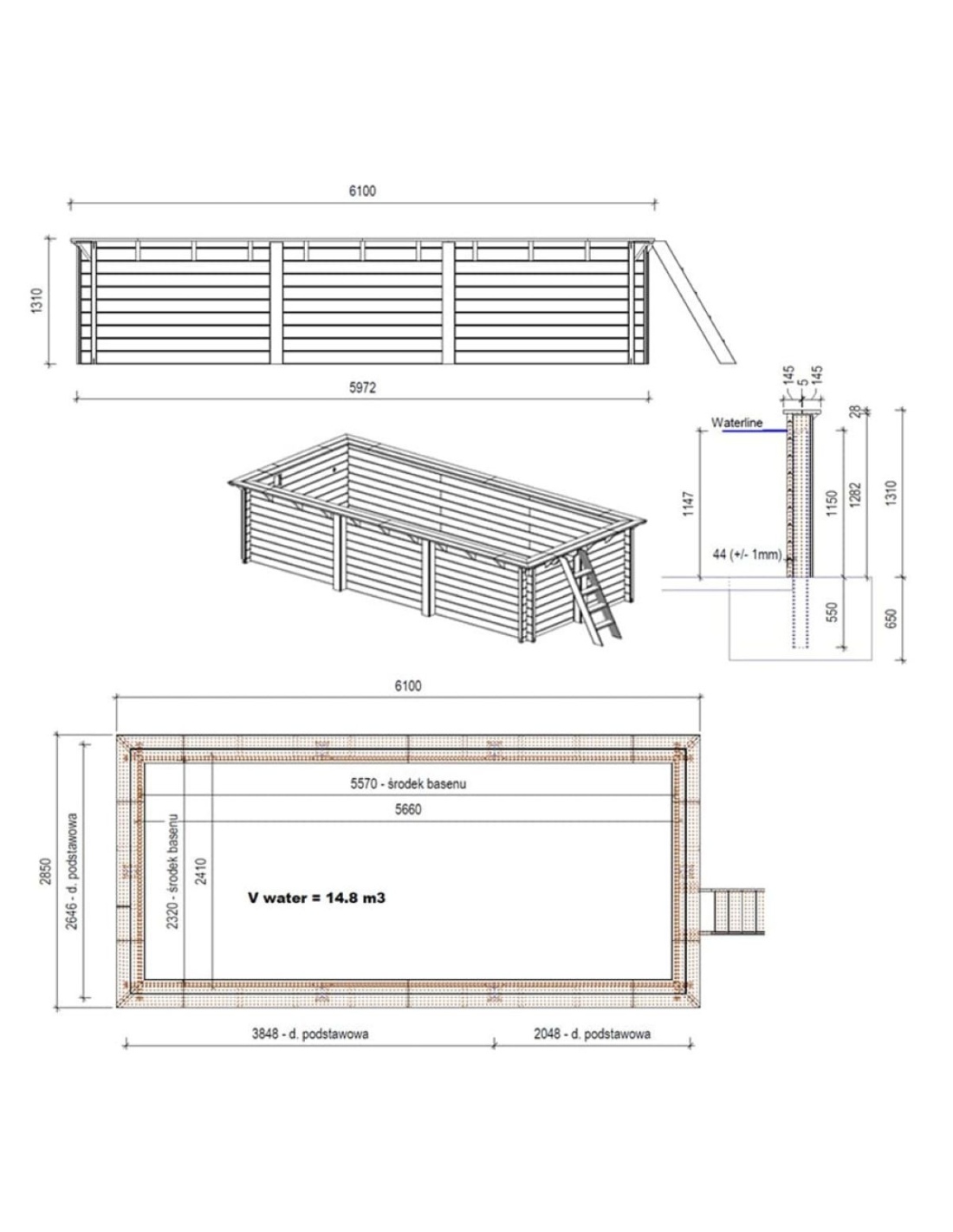 Das Poolmodell mit den Abmessungen 6.1 × 2.85 m und einer Höhe von 1.31 m wurde so konzipiert, dass die ganze Familie an warmen Sommertagen komfortabel Abkühlung genießen kann.