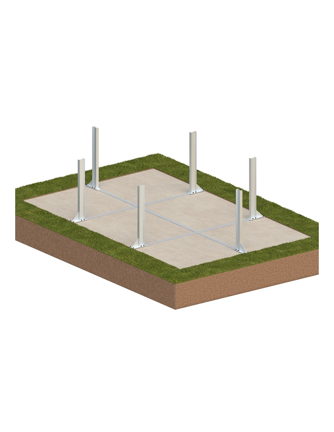 - Art der Bodenverankerung: Auf freistehendem Stahlrahmen ohne Betonieren