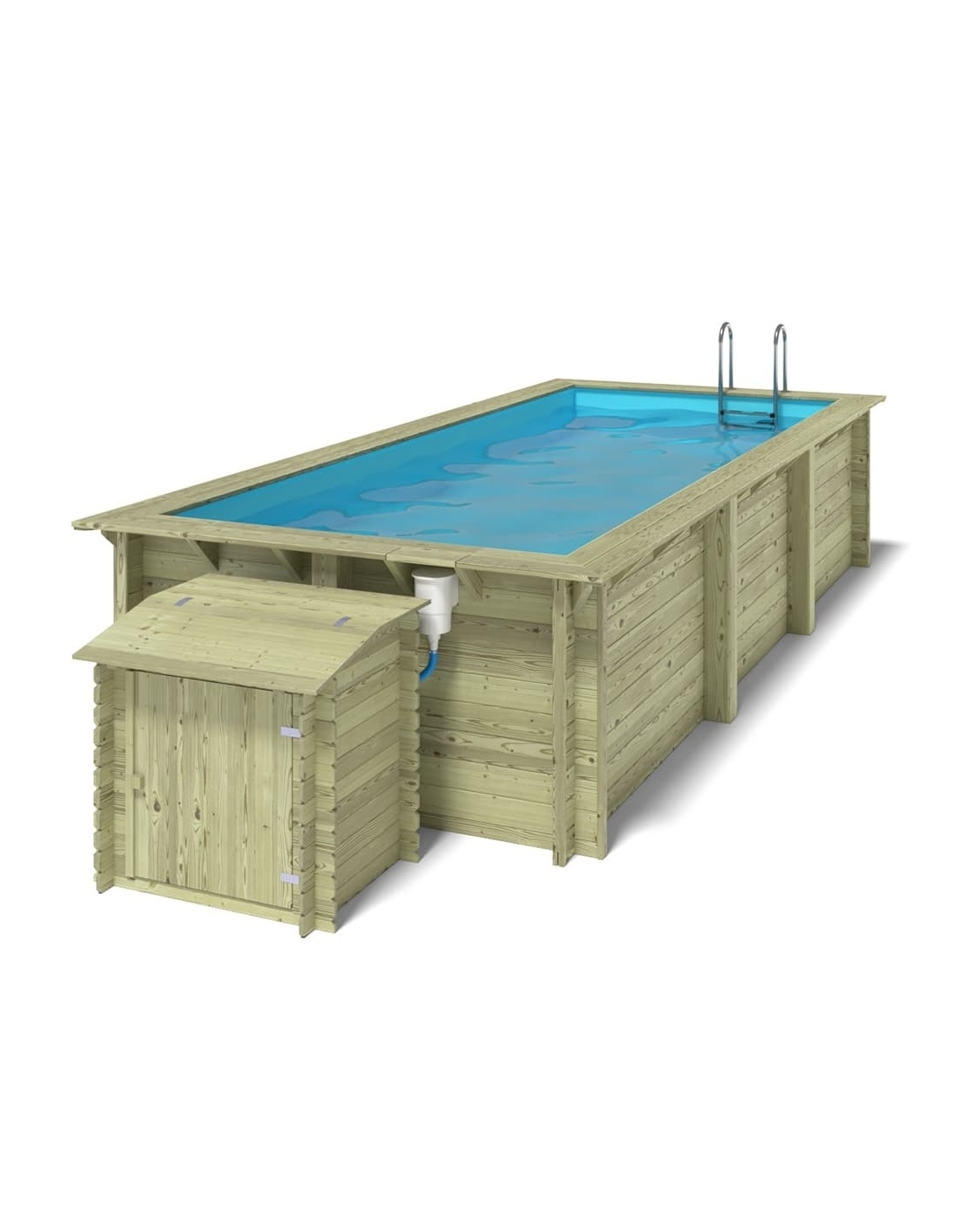 Die Holzkonstruktion verleiht ein warmes und natürliches Aussehen, was diese Art von Pools zu einer beliebten Wahl bei Gartenbesitzern macht, die Wert auf Harmonie mit der umgebenden Natur legen.