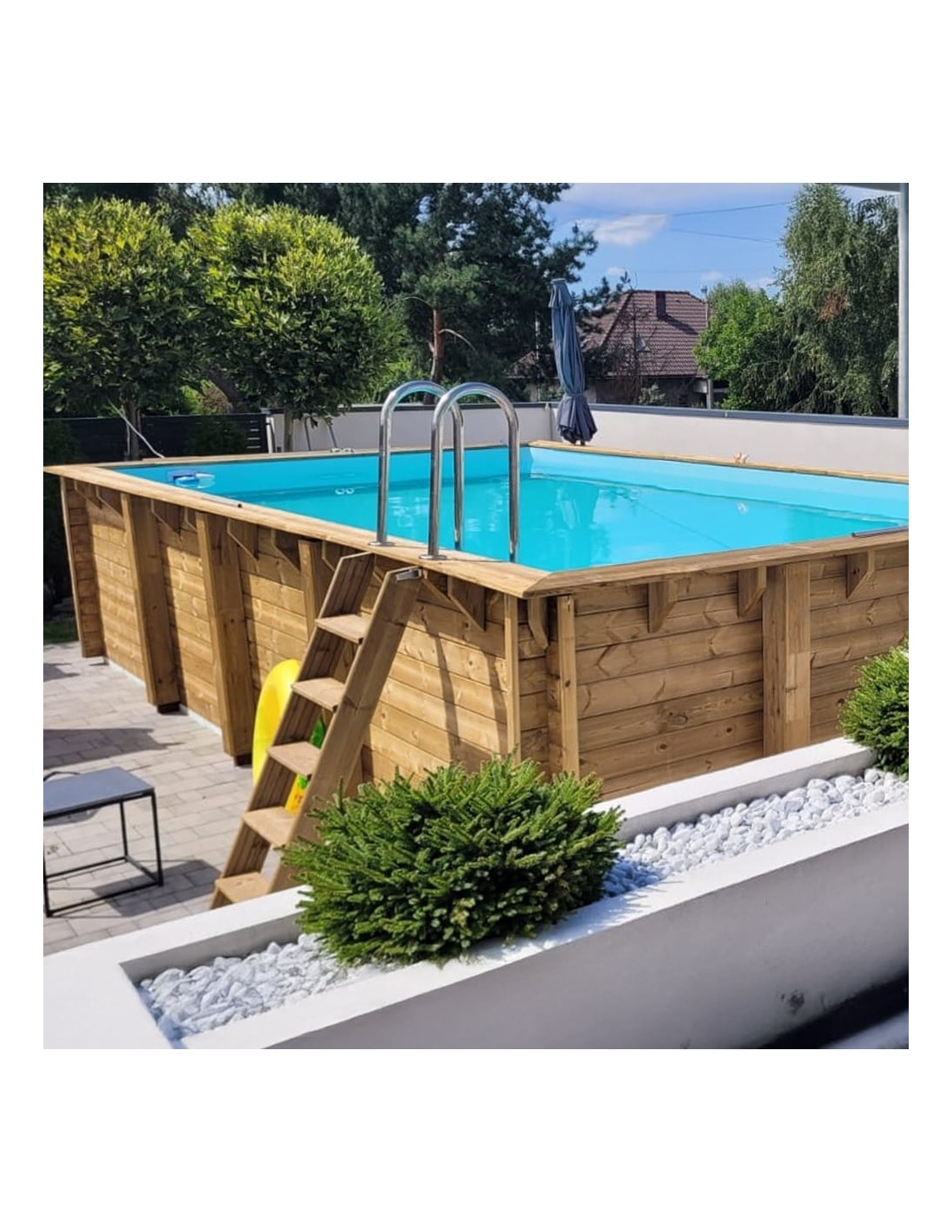 - Holztreppe mit der Möglichkeit, sie zu entfernen, wenn der Pool nicht genutzt wird