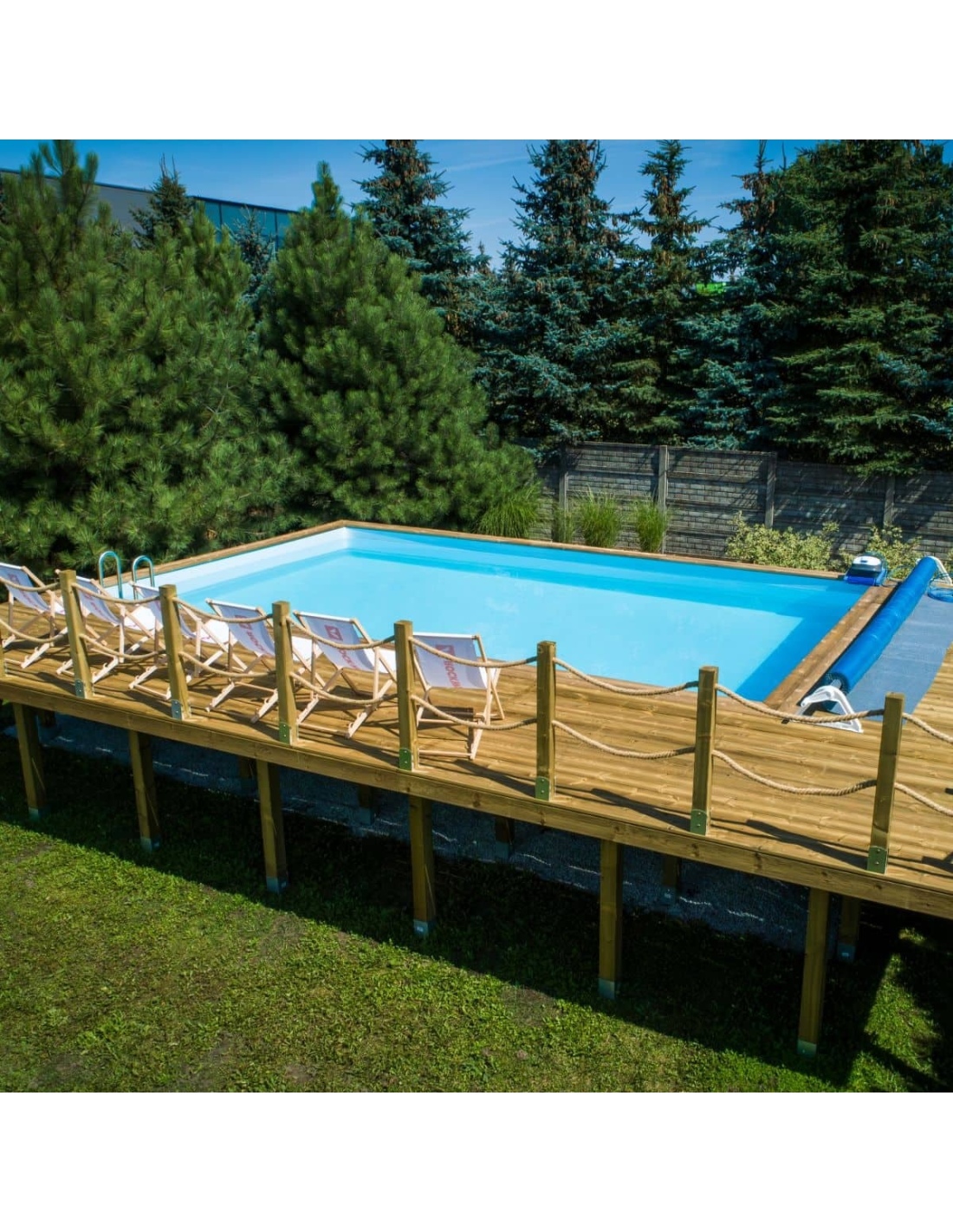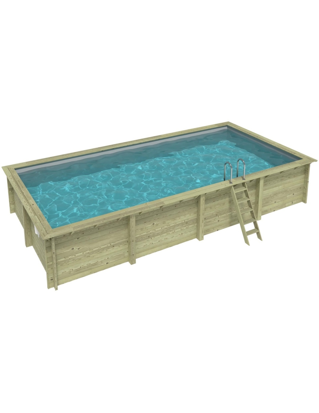 Der Pool besteht aus imprägniertem Kiefernholz, das nicht nur optisch überzeugt, sondern dank des Imprägnierungsprozesses: