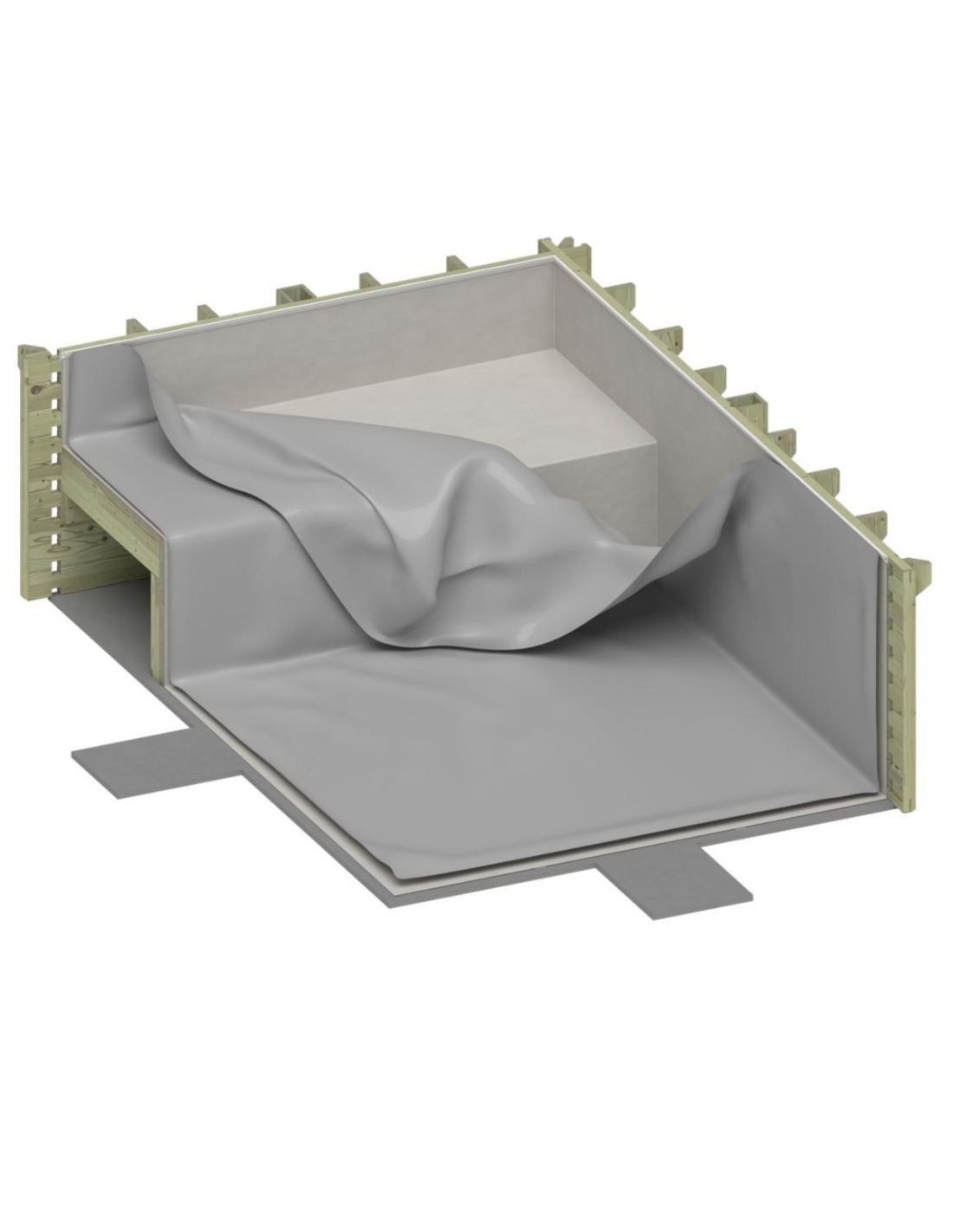 - PVC-Liner mit einer Stärke von 0.75 mm inklusive Vlies und ausgleichender PVC-Unterlage für den Strandbereich,