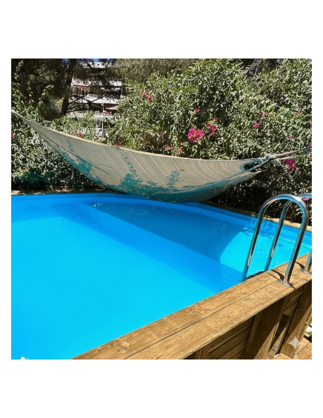 Holz verleiht der Umgebung einen eleganten und gemütlichen Charakter, und sein klassisches Erscheinungsbild sorgt dafür, dass sich der Pool harmonisch in jede Gartenart einfügt. Sie können Holzterrassen, Pflanzen oder dekorative Beleuchtung ergänzen, um eine besonders stimmungsvolle Atmosphäre zu schaffen.