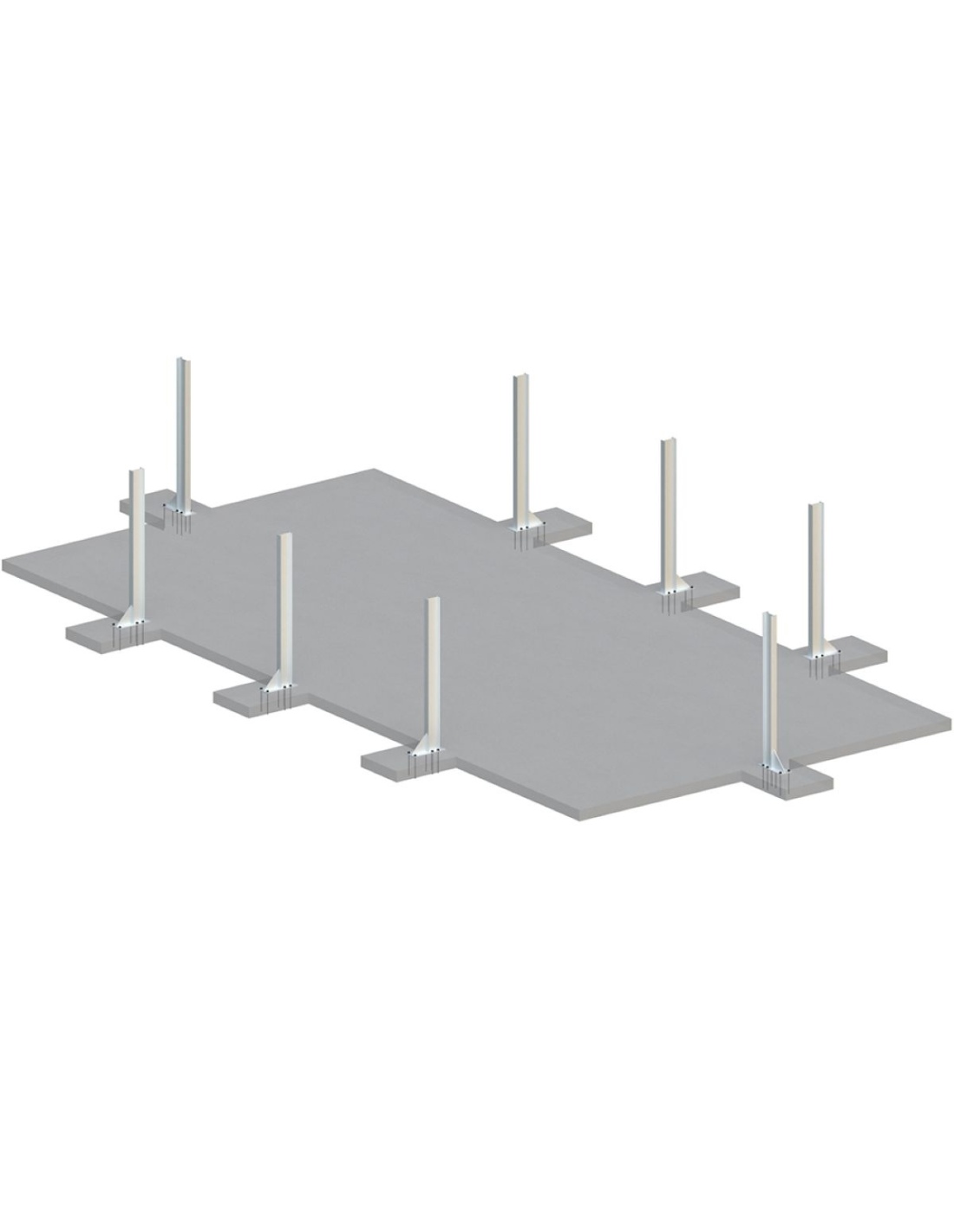 • erforderlich ist eine bewehrte Betonplatte mit einer Stärke von mindestens 10 cm (lokal mindestens 30 cm unter den Stützen),