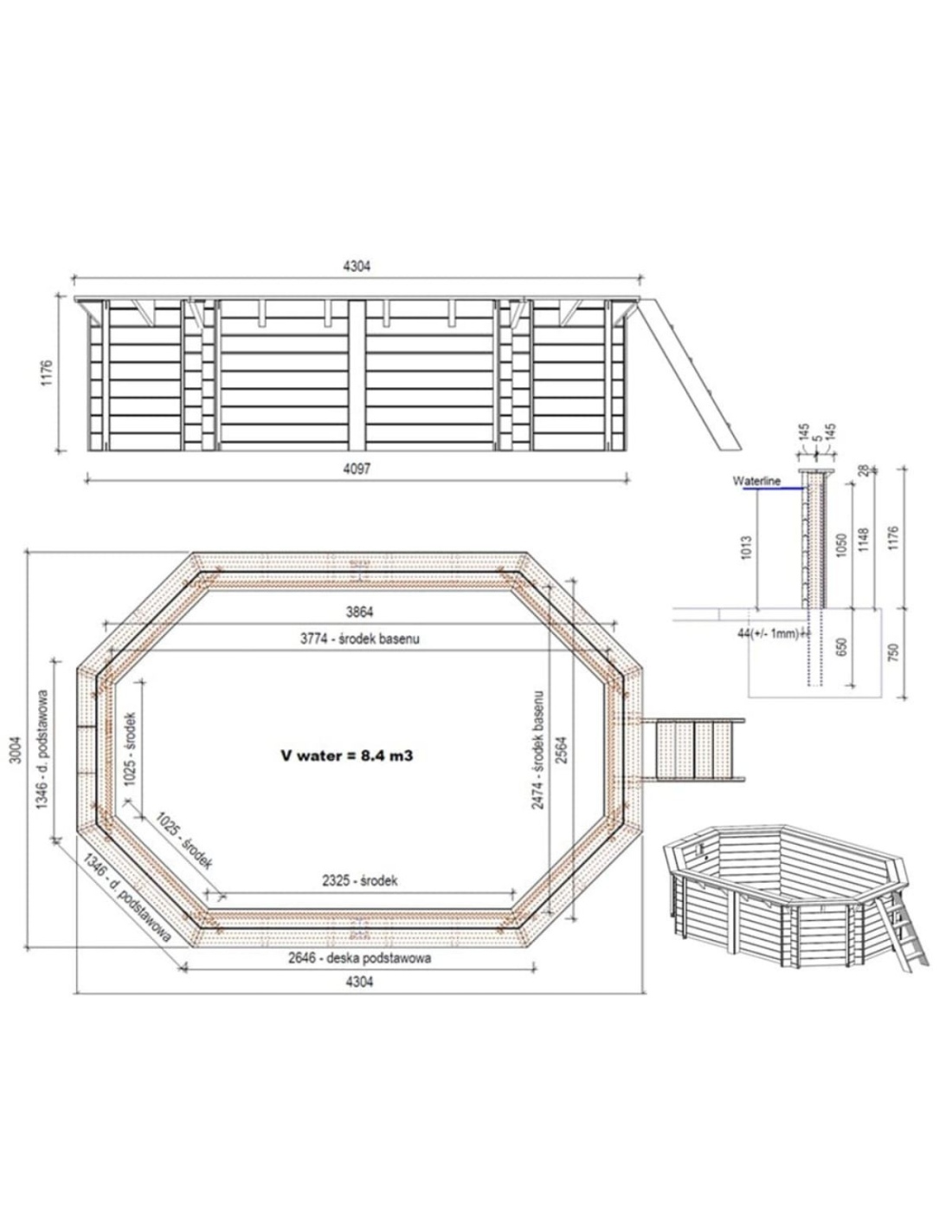 - kein Einbetonieren der Stützen im Erdreich erforderlich – die Betonplatte kann vor der Lieferung des Pools vorbereitet werden,