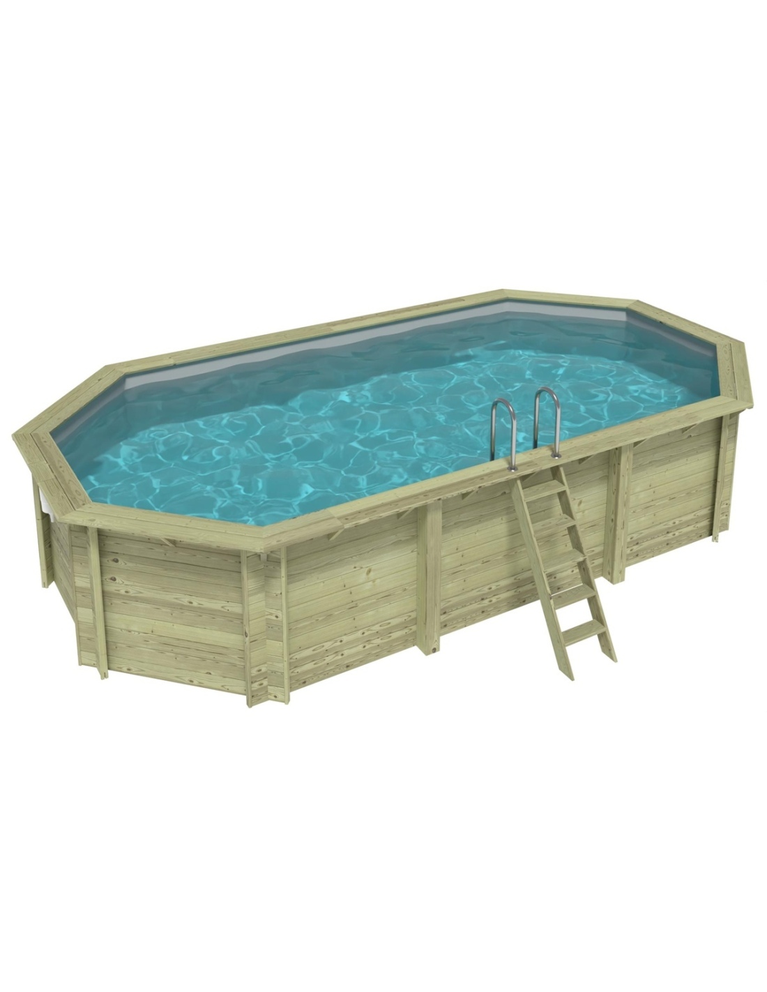 Der Pool besteht aus imprägniertem Kiefernholz, das nicht nur optisch überzeugt, sondern dank des Imprägnierungsprozesses: