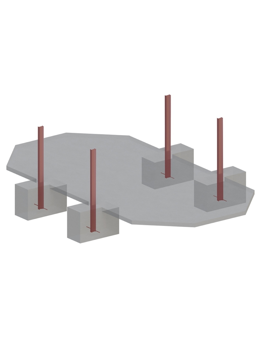 Das einbetonierte IPN-Stahlprofil ist die dauerhafteste Lösung, bei der der Pool auf Stahlstützen ruht, die in armiertem Beton verankert sind.