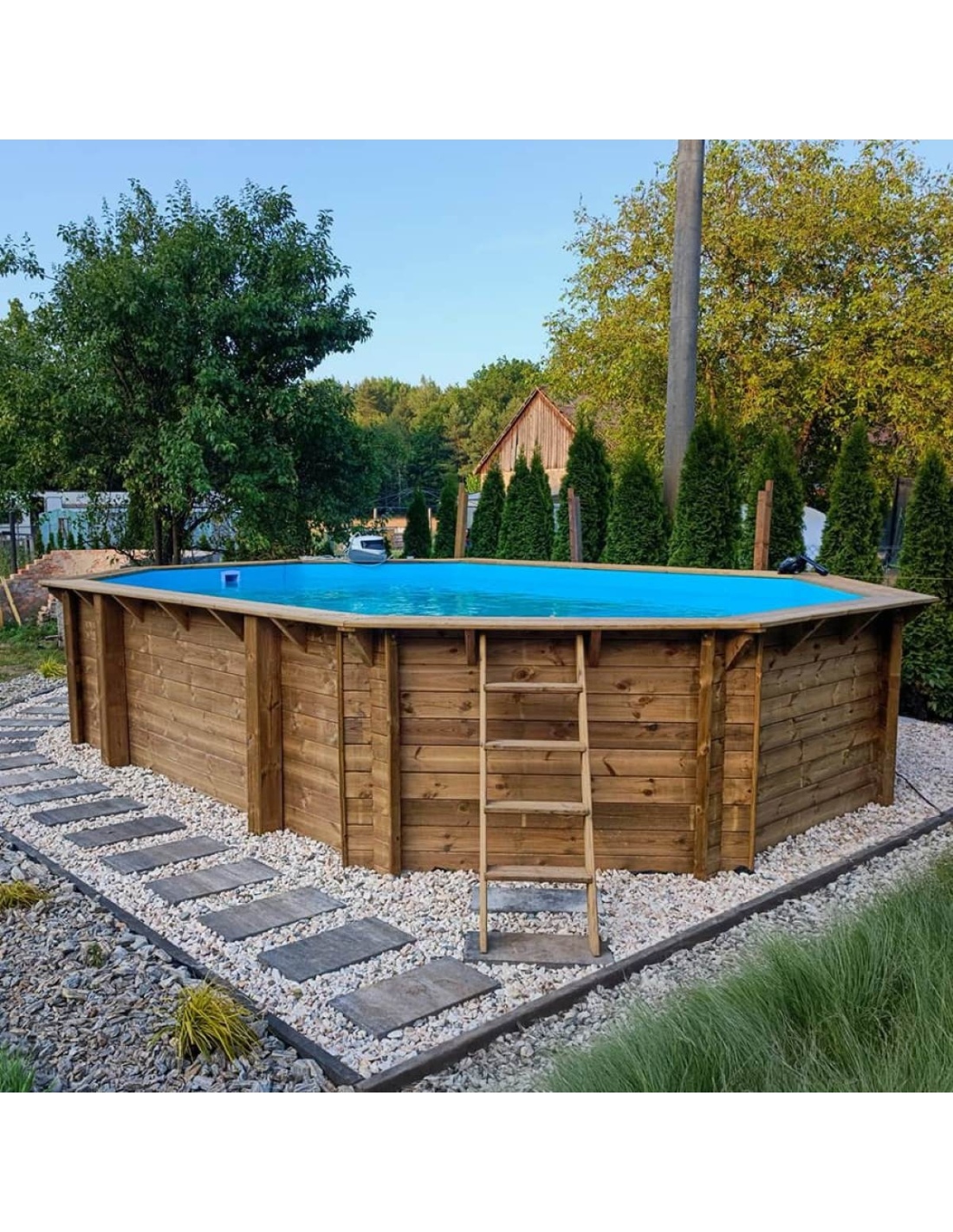 Holz-Gartenpool mit einem Volumen von 27.29 m³, gefertigt aus hochwertigem, imprägniertem skandinavischem Holz. Ideal für sommerliche Entspannung und Spiel im Garten.