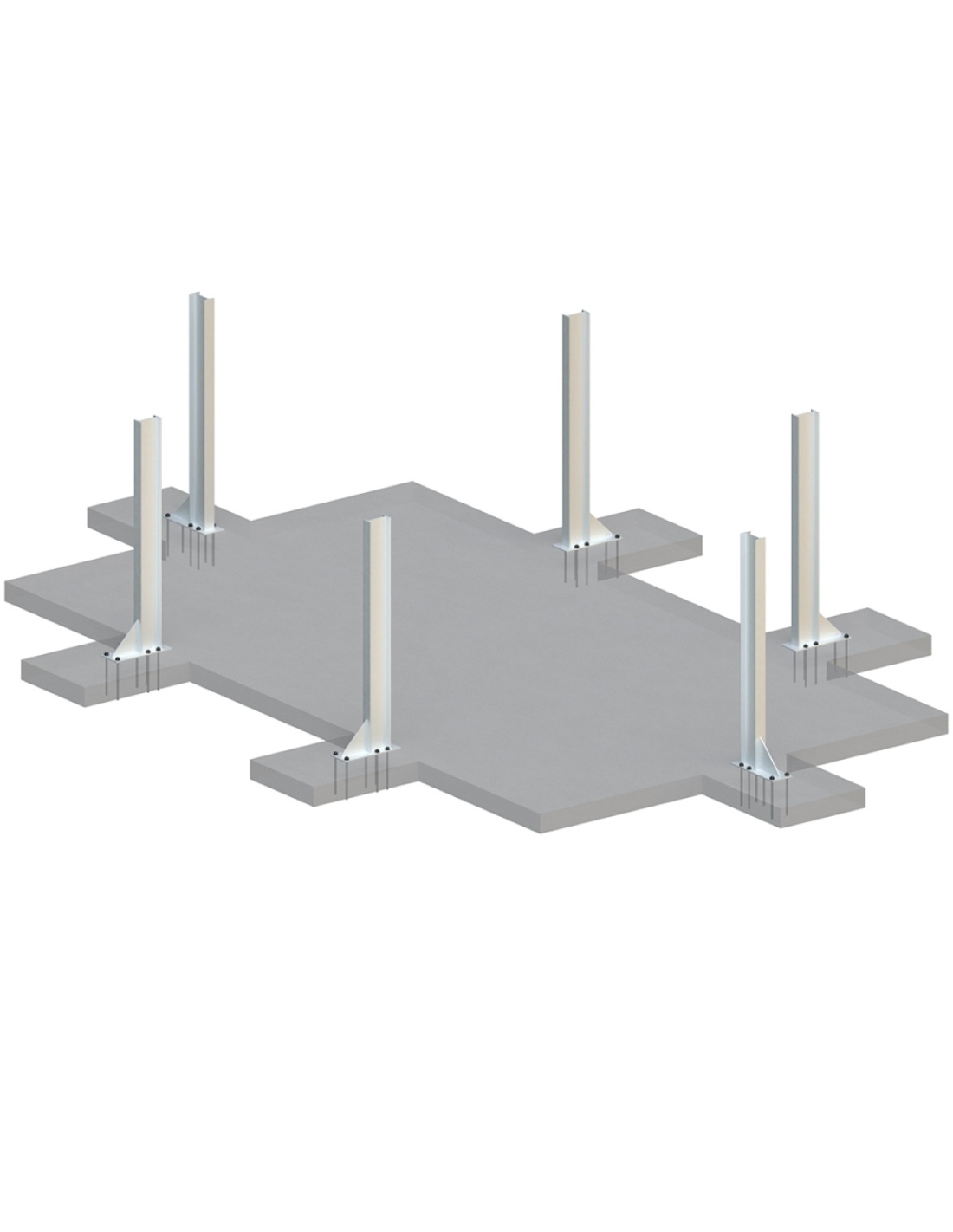- die Stützen werden mit chemischen Ankern gemäß den technischen Zeichnungen an der Platte befestigt,