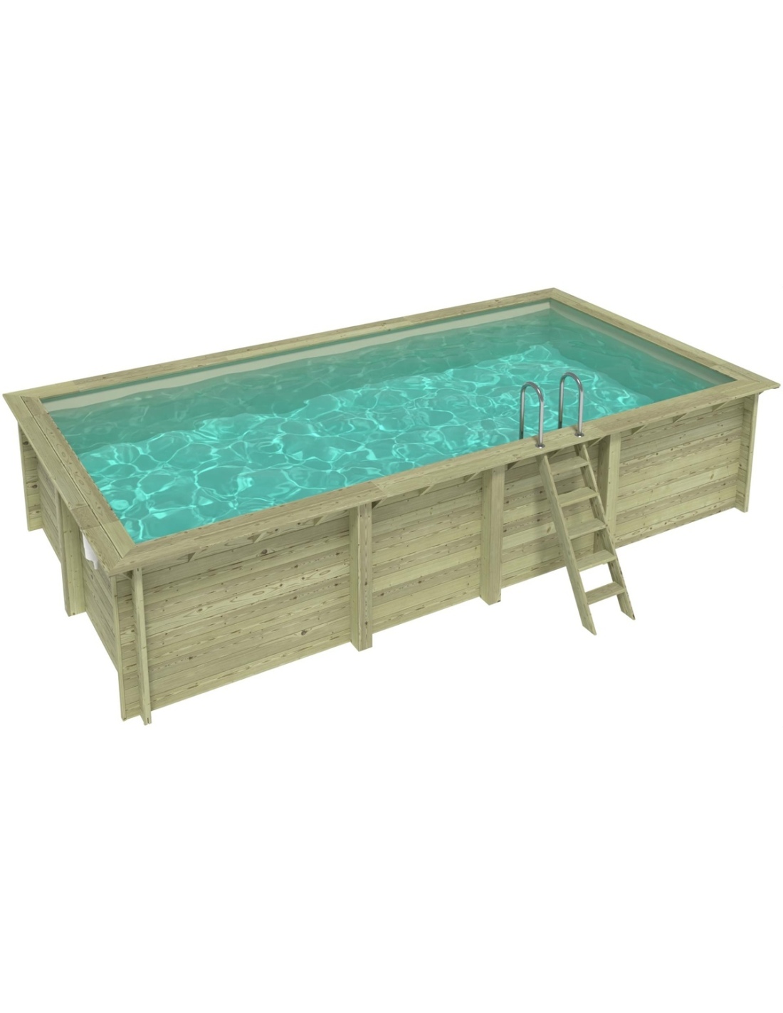Der Pool besteht aus imprägniertem Kiefernholz, das nicht nur optisch überzeugt, sondern dank des Imprägnierungsprozesses: