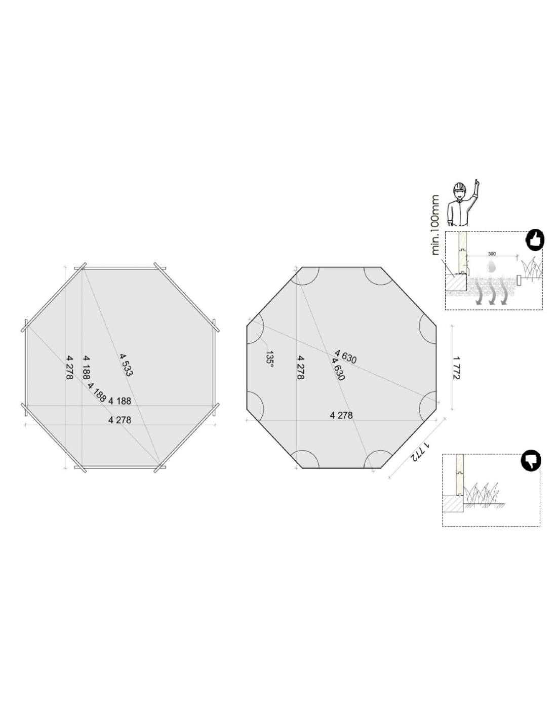 - Form: achteckig