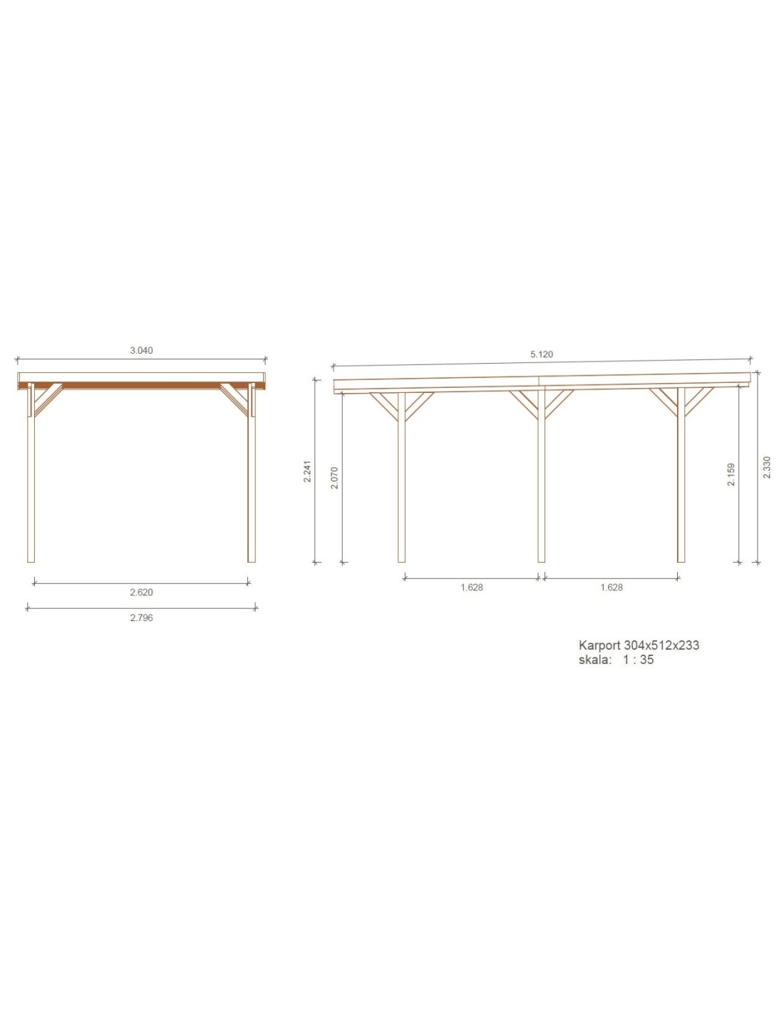 Die Fotos zeigen Holzcarport CAR16PVCTR mit der Breite von 3.04M und Tiefe von 5.12M mit der Dachdeckung. Höhe des Einfahrts beträgt 2.07M. Die maximale Dachlast beträgt 35 kg/m2 (einschließlich Dacheindeckung und Niederschlag, z. B. Schnee, Eis, Laub usw.)