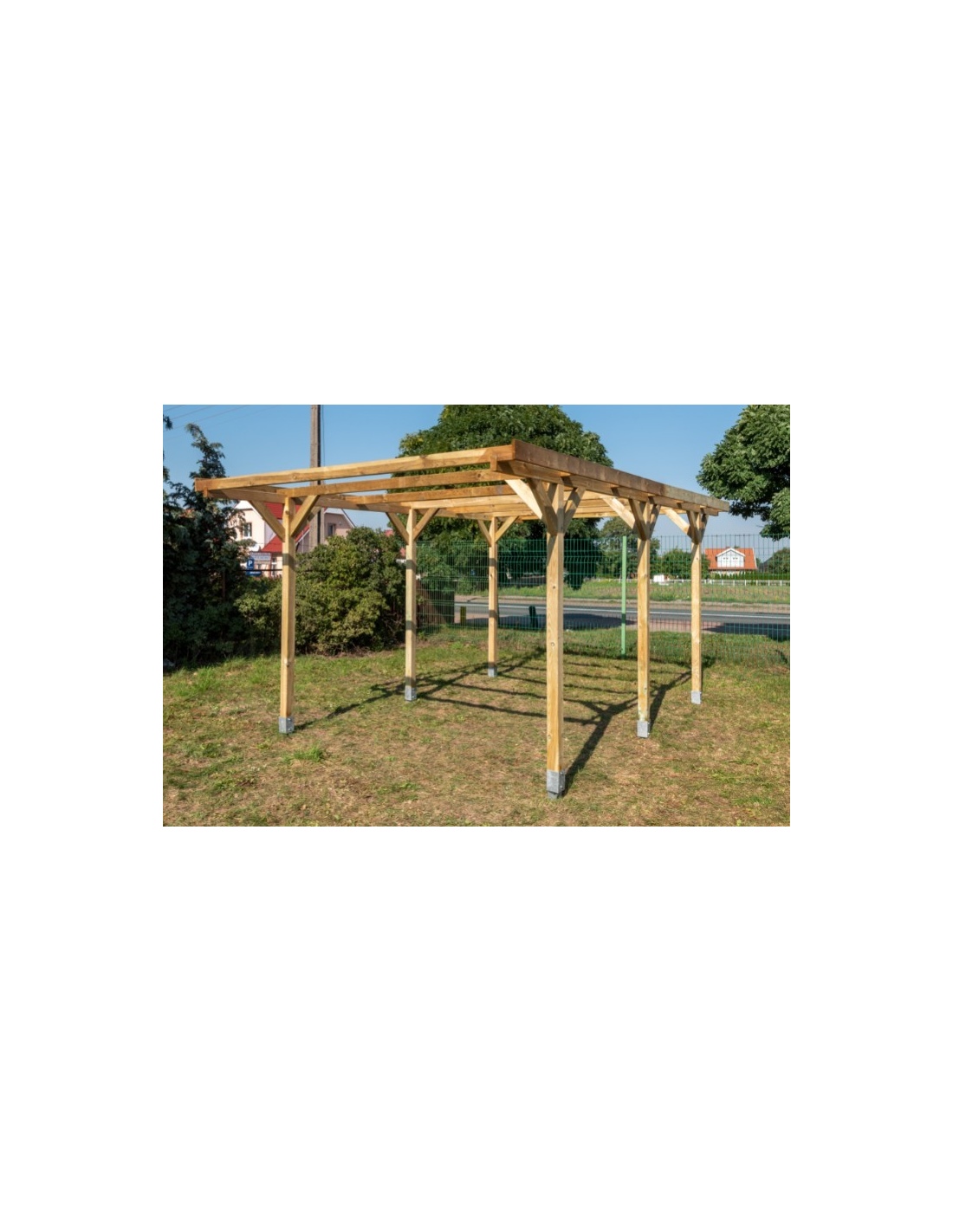 Holzcarport CAR16 von ALTANKA p.s.a. ist eine perfekte Lösung für Autobesitzer, die ihr Fahrzeug vor Regen, Schnee oder Sonneneinstrahlung schützen möchten. Carports aus Holz zeichnen sich durch Langlebigkeit und Ästhetik aus, sie passen zu den meisten Architekturstilen und fügen sich perfekt in die Umgebung ein. Carport aus Holz ist einfach zu montieren und zur Wartung.
