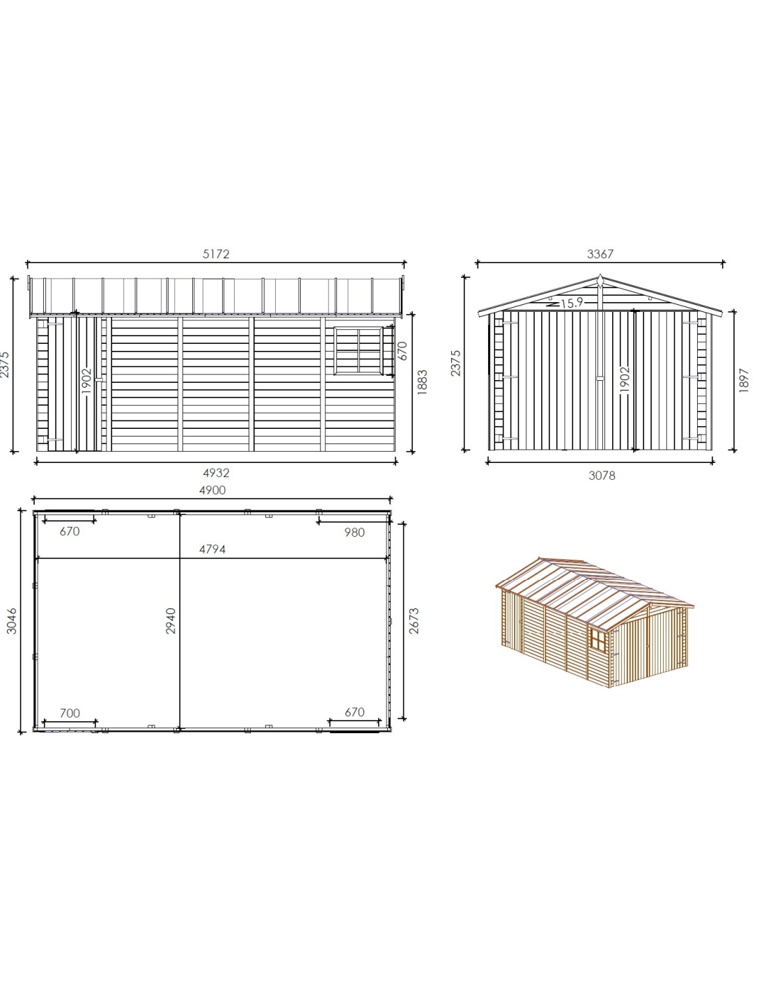 Die Fotos zeigen Holzgarage GAR28 mit der Breite von 3.05M und Tiefe von 4.93M. Höhe des Einfahrts beträgt 1.9M.