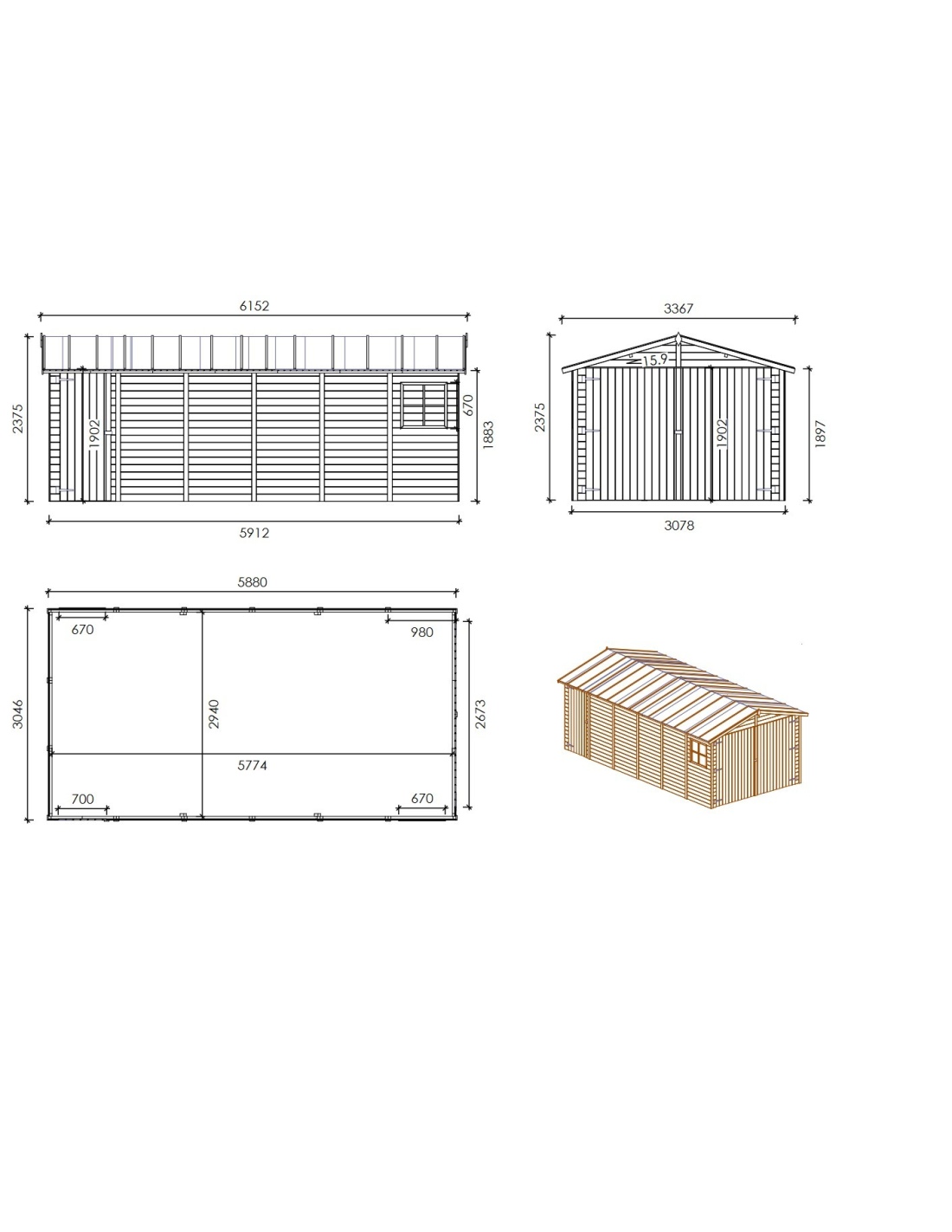 Die Fotos zeigen Holzgarage GAR29 mit der Breite von 3.05M und Tiefe von 5.91M. Höhe des Einfahrts beträgt 1.9M.