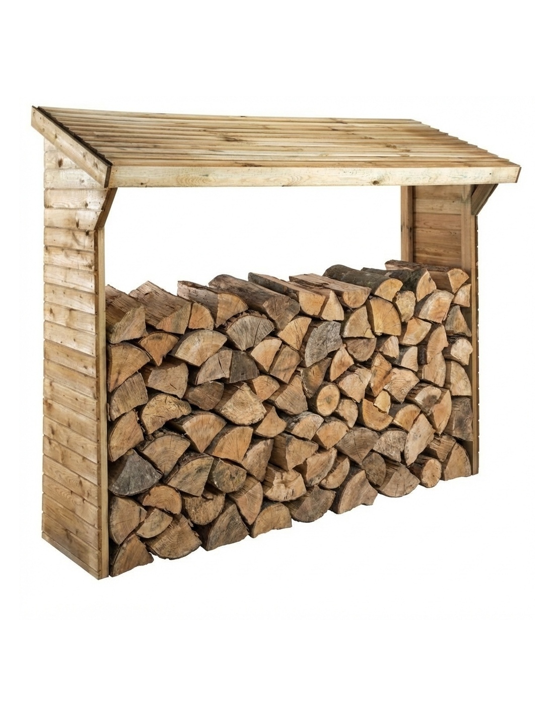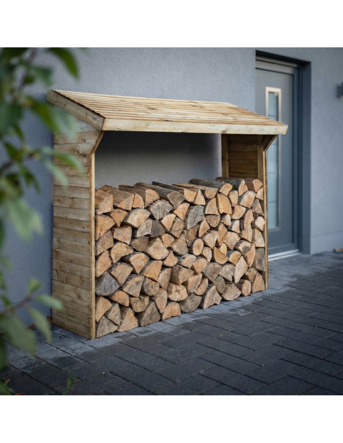 Das angebotene Produkt DREW2 hilft dabei, einen Ort zur ordentlichen Aufbewahrung von Holz zu schaffen, während das Dach es vor Schnee und Regen schützt. Gleichzeitig sorgt die offene Konstruktion für ausreichende Belüftung, die das Holz auf natürliche Weise trocknet und Sonnenlicht und Wärme zulässt.