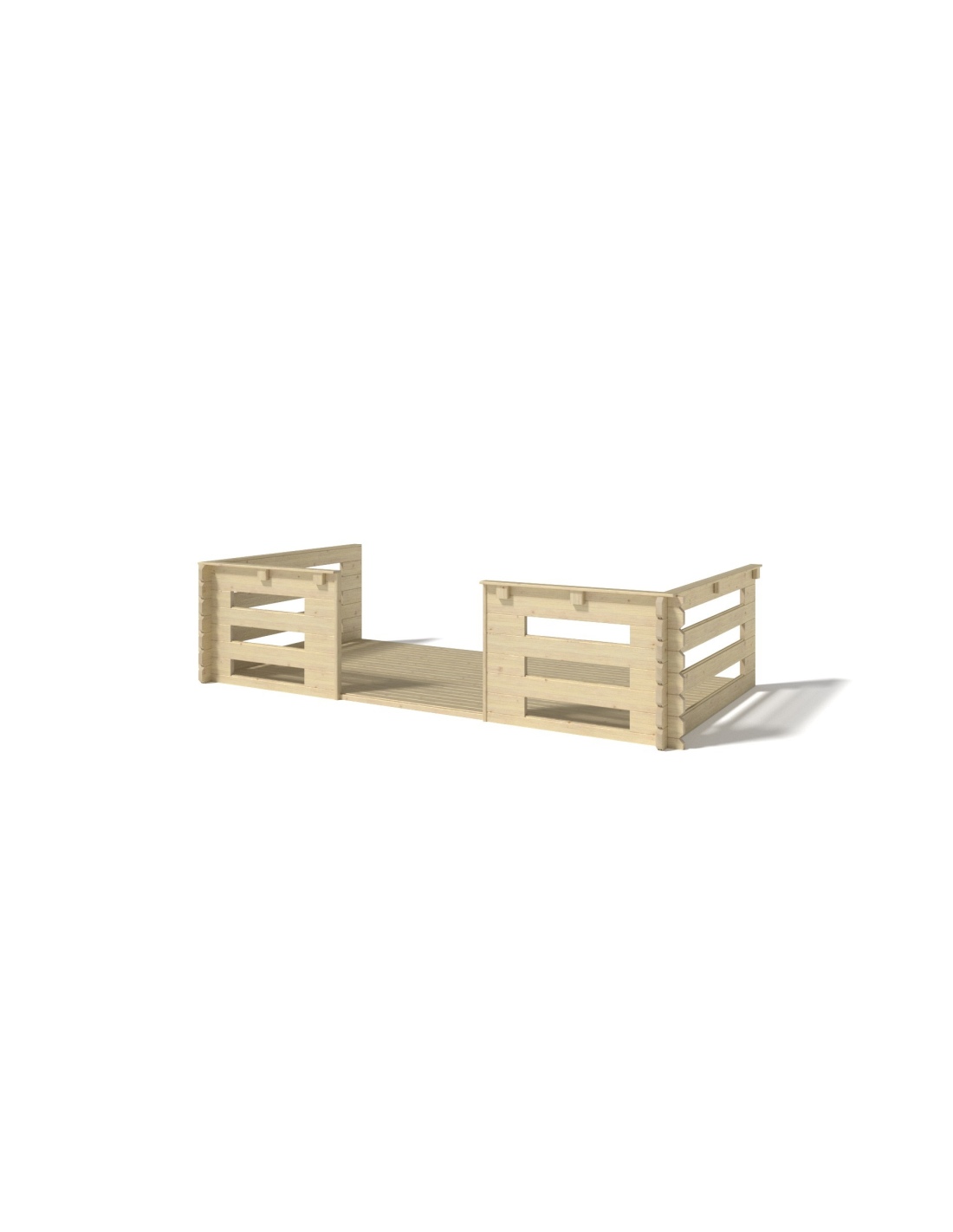 Holzterrasse DOM545 mit einer Fläche von 8 m2, einer Breite von 4 m und einer Tiefe von 2 m. Die Veranda passt zu den Holzgartenhäuschen mit einer Frontbreite von 4 m i nd einer Dicke von 40 mm, die von ALTANKA p.s.a. angeboten werden. Die Montage gemäß der beigefügten Anleitung bereitet keine größeren Schwierigkeiten.