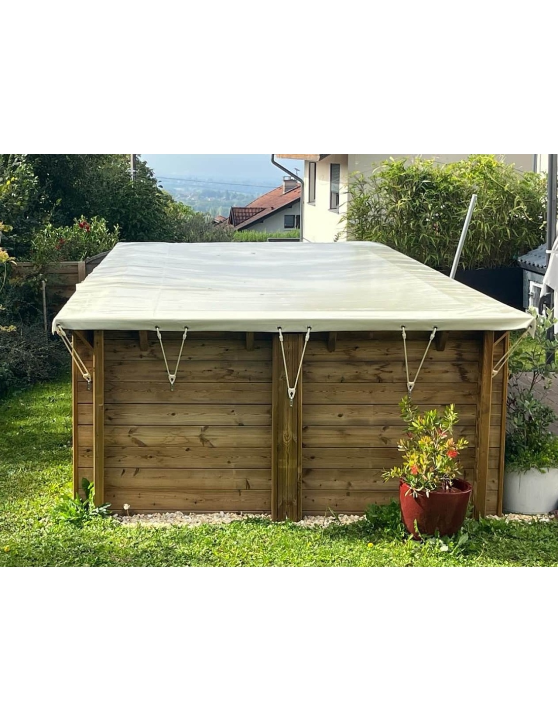 Die Winterabdeckung wurde speziell für oberirdische Holzpools entwickelt.Ihre Konstruktion, die verwendeten Materialien sowie das Befestigungssystem erfüllen hohe Sicherheits- und Haltbarkeitsstandards und bieten einen zuverlässigen Schutz des Pools während der Wintersaison. Die Abdeckungen werden auf Bestellung gefertigt.