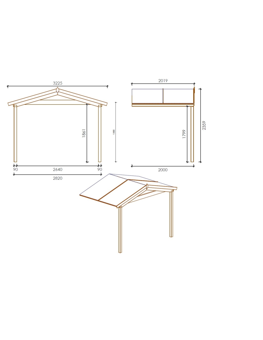Das angebotene Dach eignet sich perfekt als Abdeckung gegen sengende Sonne, Regen, Schnee, Hagel oder andere Niederschläge, mit einer vorderen Breite von 3 m und einer Tiefe von 2 m (Fläche: 6 m2). Das Dach passt zu Gartenhäusern aus Holz mit Satteldach und einer Frontbreite von 3 m die aus 28 mm dicken Brettern gefertigt sind und in unserem Geschäft erhältlich sind.