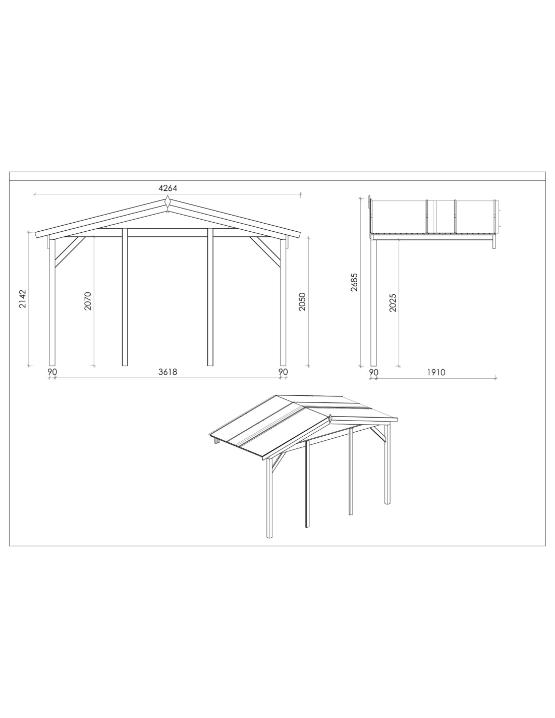 - Pfostenstärke (mm): 90x90
